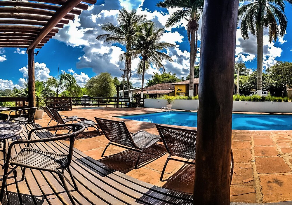 Enjoy the outdoor pool and take in the scenic views from the garden at Camping e Lazer Jacaré.
