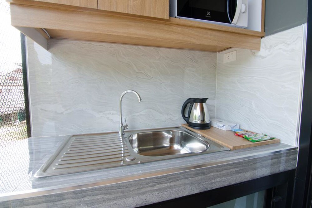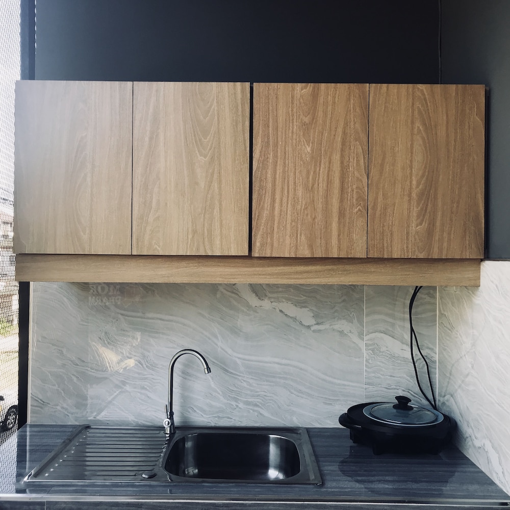 Highly recommend - this place is in a new development/building! it is well decorated, has larger than usual bed size (almost a king size), the shower and bathroom area is huge and unlike many accommodations in koh samui, the shower and the toilet do have a small wall separating them. It is super clean, more than enough space and a massive floor to ceiling window that leads to the balcony. it also has a fully stocked kitchen that we didn't use. the locatio is great, it is across the road from a pharmacy and a family mart and if you walk just a few minutes there are a row of 4-5 restaurants including Rinos that has great Italian (in case you get tired of delicious thai food)