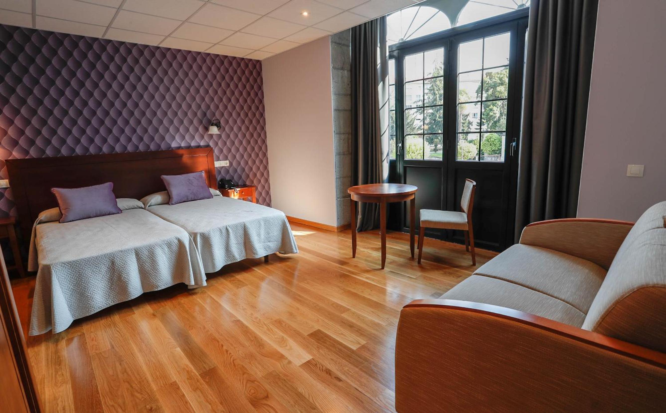 Habitación bastante grande, cogimos la opción de una habitación un poco más grande por un poco de precio. Eso estuvo muy bien pero nos tocó la última planta y no hay ascensor... Pero no nos importó y el señor de recepción nos ayudó a subir nuestro equipaje. Tiene unas vistas muy bonitas, incluso para hacer una cena íntima esta muy bien. Personal muy bueno. El desayuno es cacero, no es de buffet pero estaba riquísimo. Aparcamiento muy fácil, cómodo.