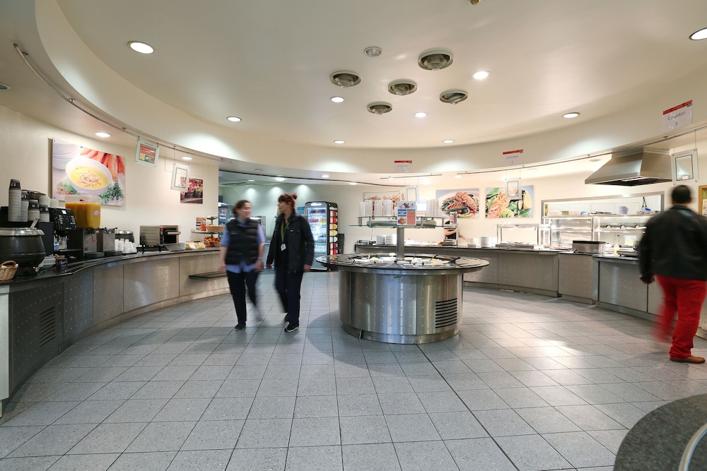 This really is a dorm room, so no TV, no valet for luggage, no air conditioning (but there are fans). Fairly long walk to room, no hair dryer, but we did have daily housekeeping for room. The location is great for visiting the natural History museum, science museum and art museum. There is a pub open with some food. Bus stop is just out front. Price was great for this location.