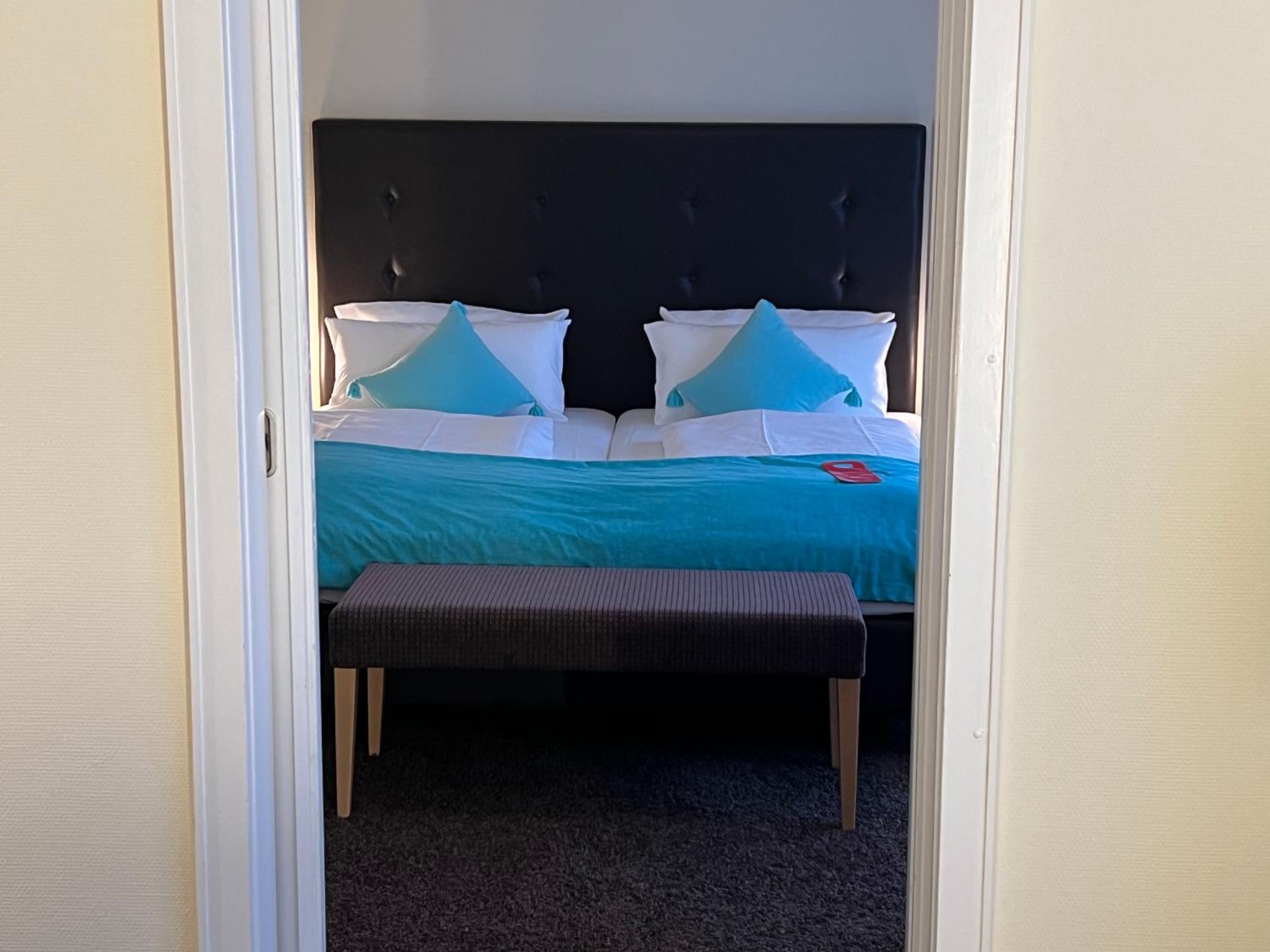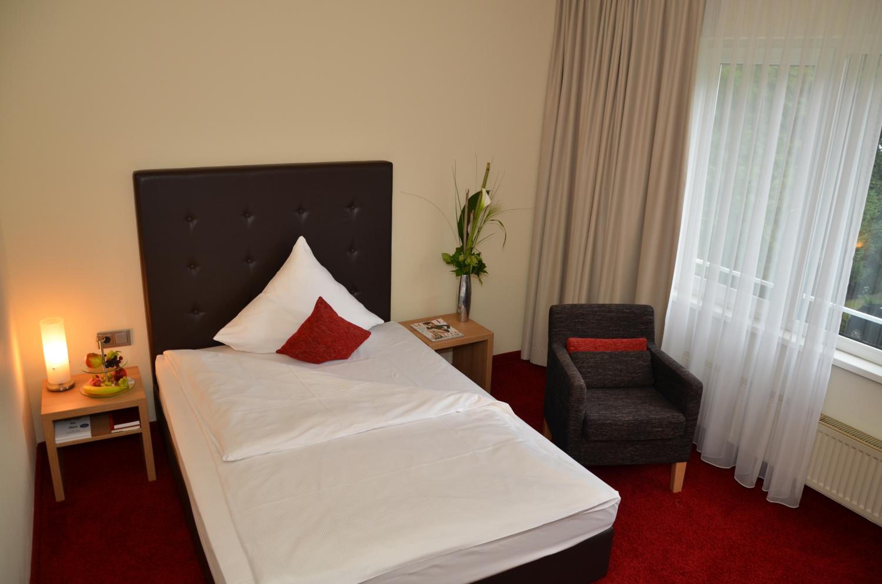 Wir haben Freunde besucht daher war die Lage etwas außerhalb der Ortschaft für uns optimal. Das Hotel liegt gleich neben einem wunderschönen Park und circa 1 km von der Innenstadt entfernt, dass ich als Zentral bezeichnen würde. Das Hotel selbst ist sehr sauber und absolut ruhig. Die Betten sind gut die Bäder neu und wir haben nach einem Zimmer ohne Teppich gefragt, was ohne Probleme möglich war. Das Frühstück war in Ordnung. Das Hotel hat einen Scharm, der sich von den Einheits Hotels in diesen Jahren sehr schön abhebt.