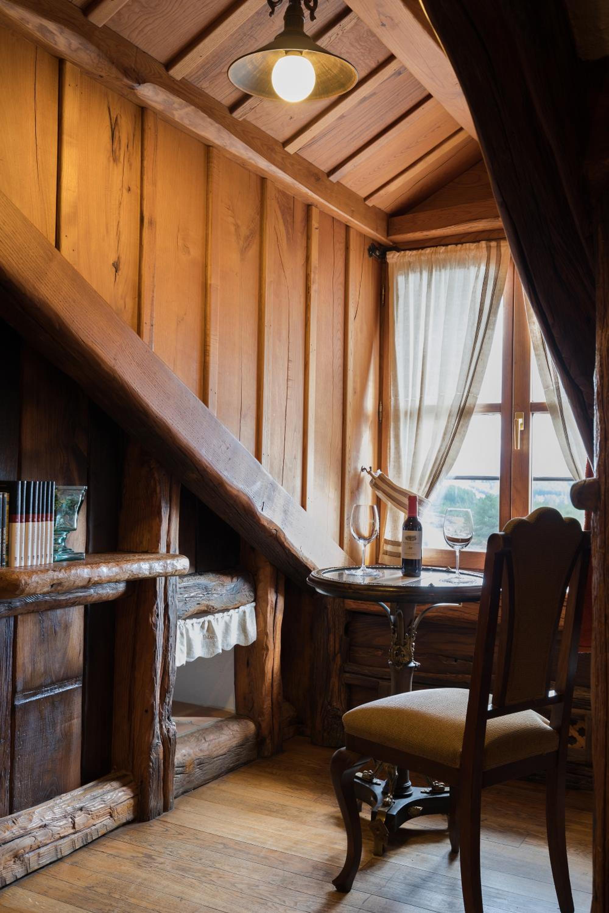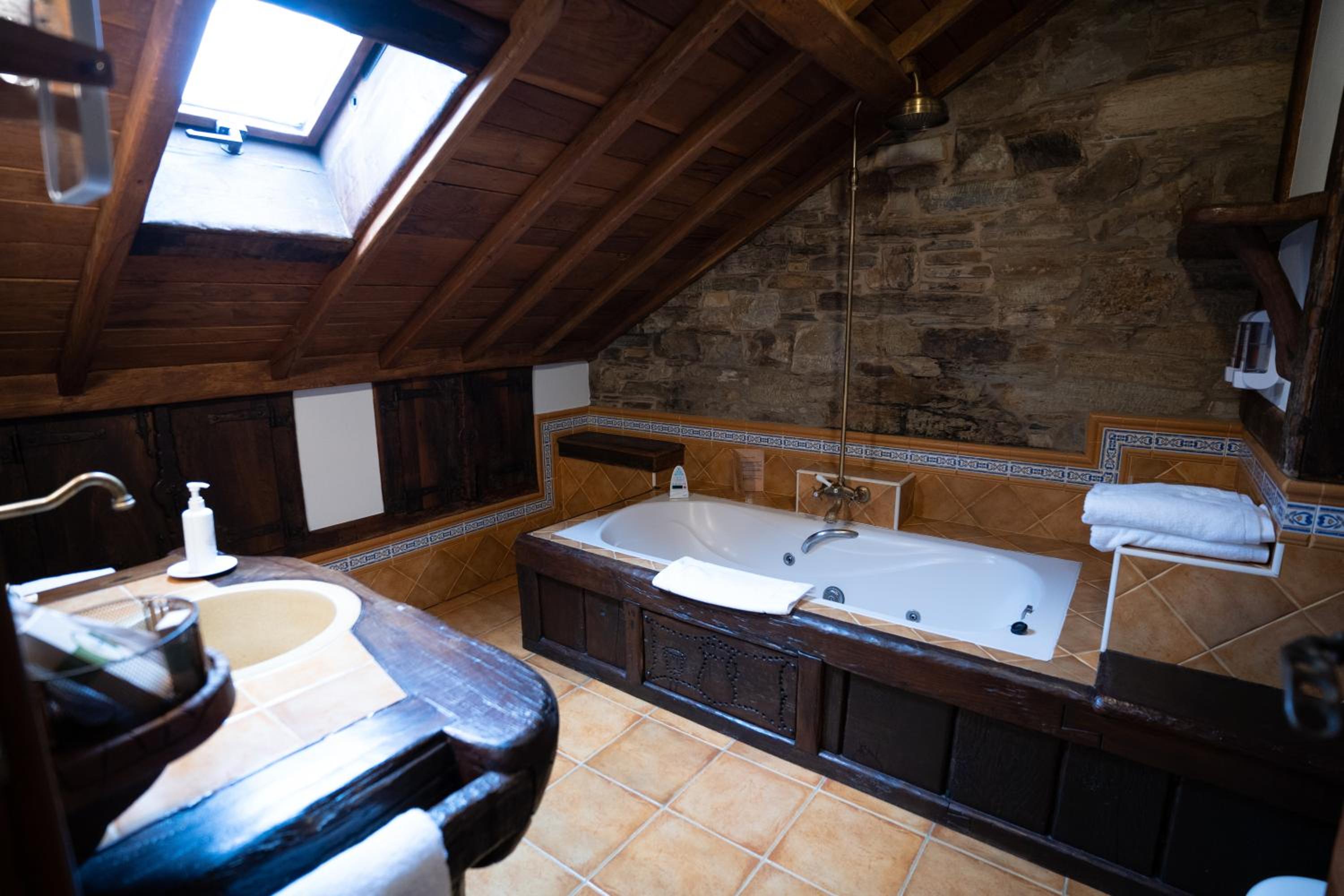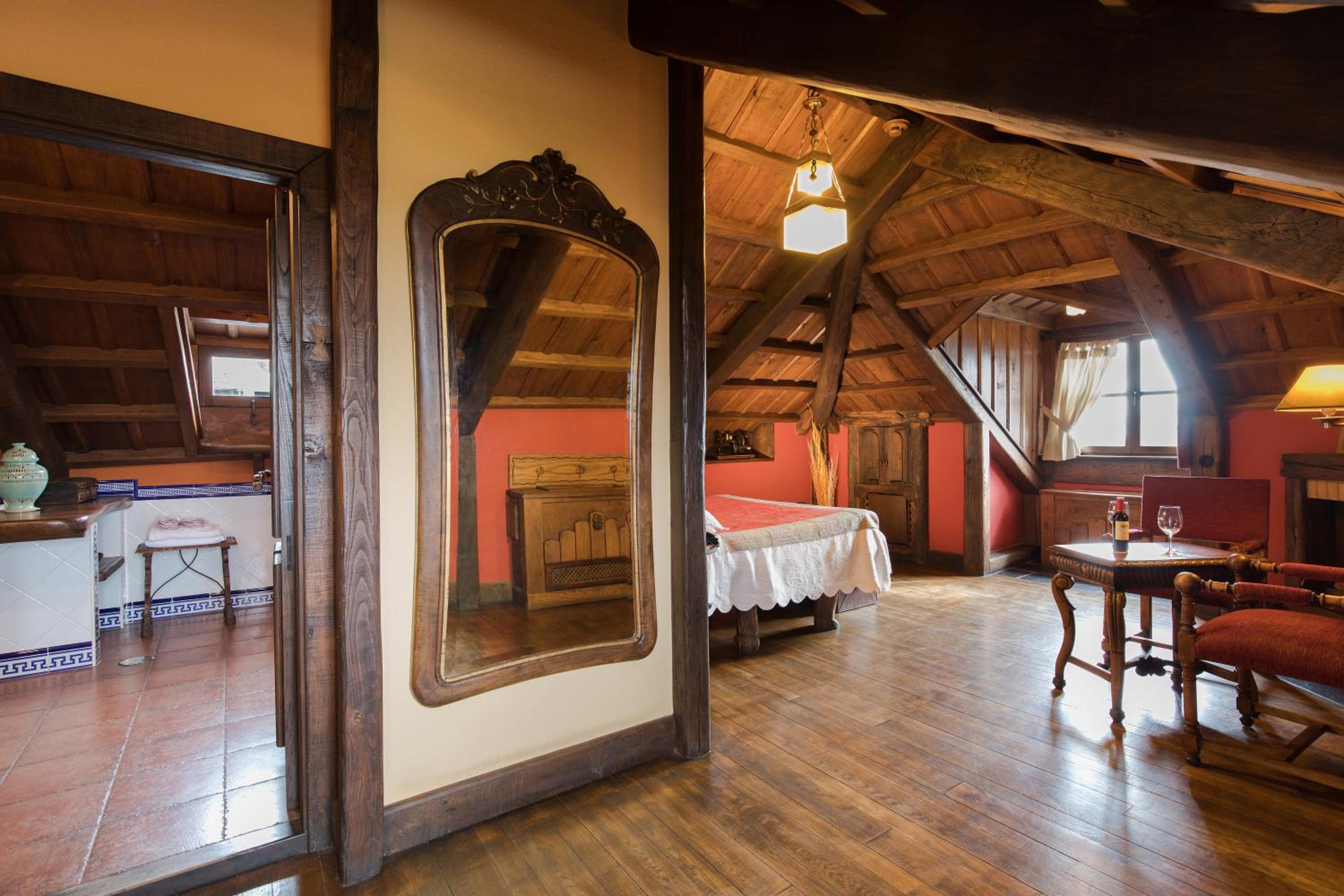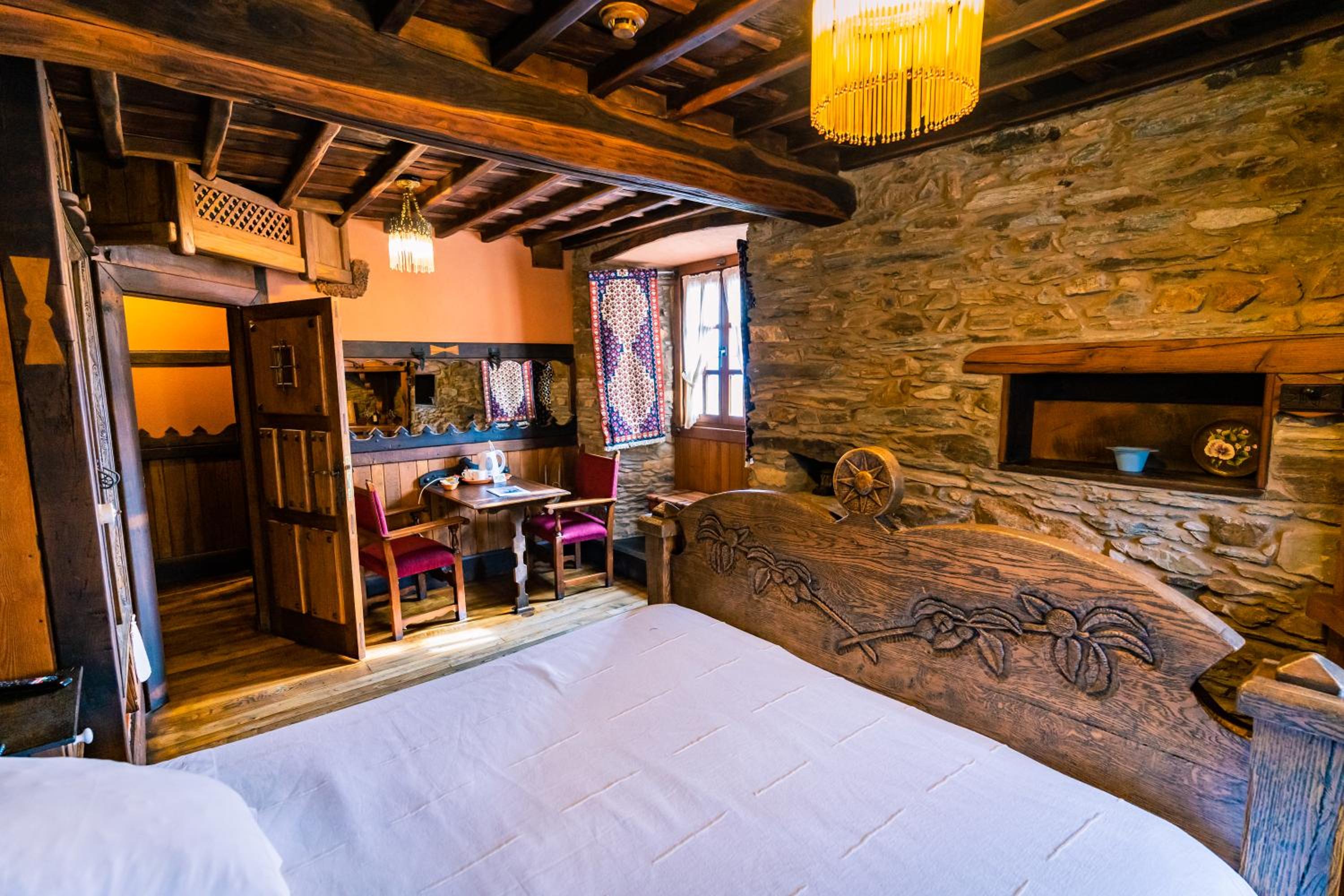 The wood details, and the staff of course, and the gastronomy, The silence, the car right next to the room, the bathroom,