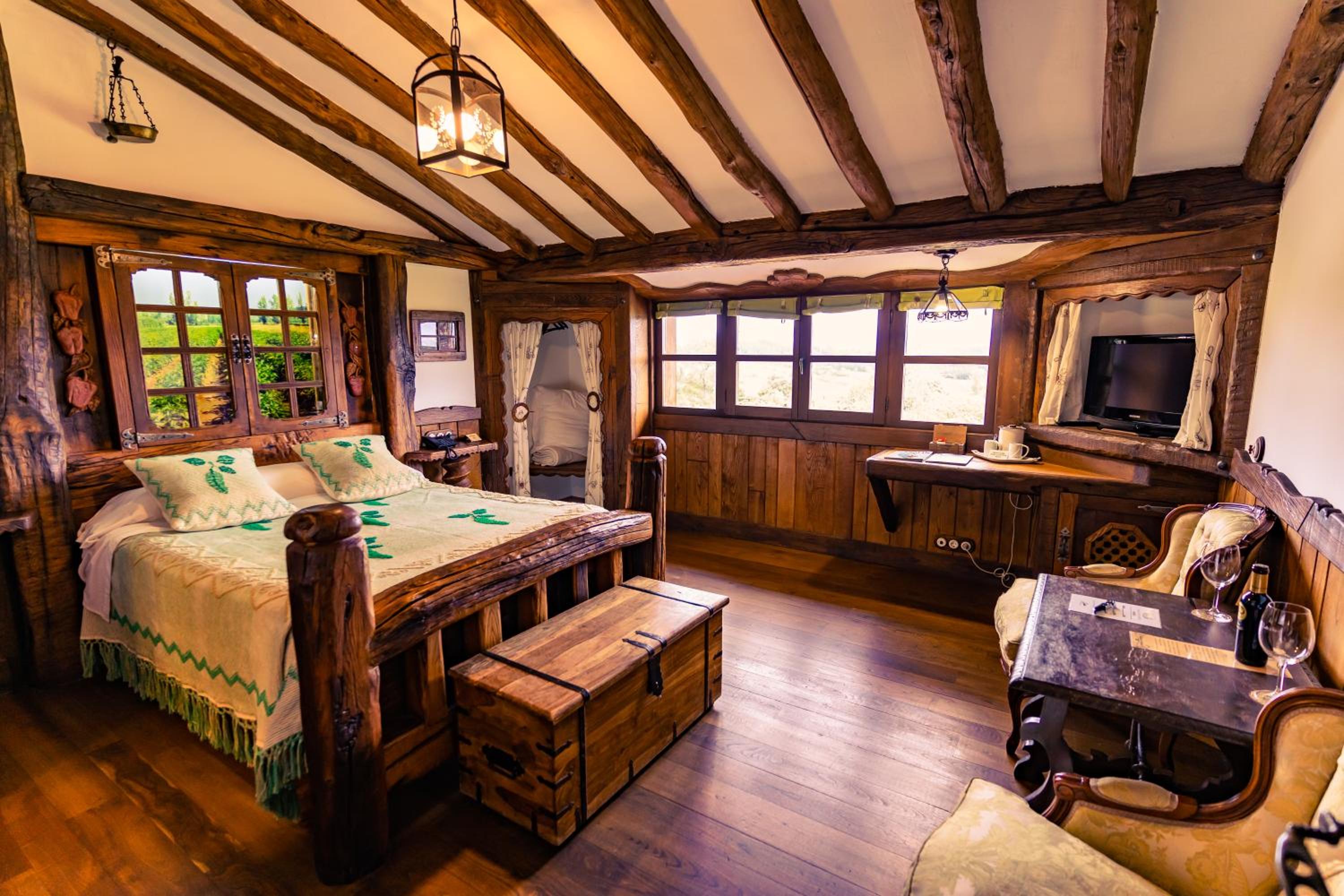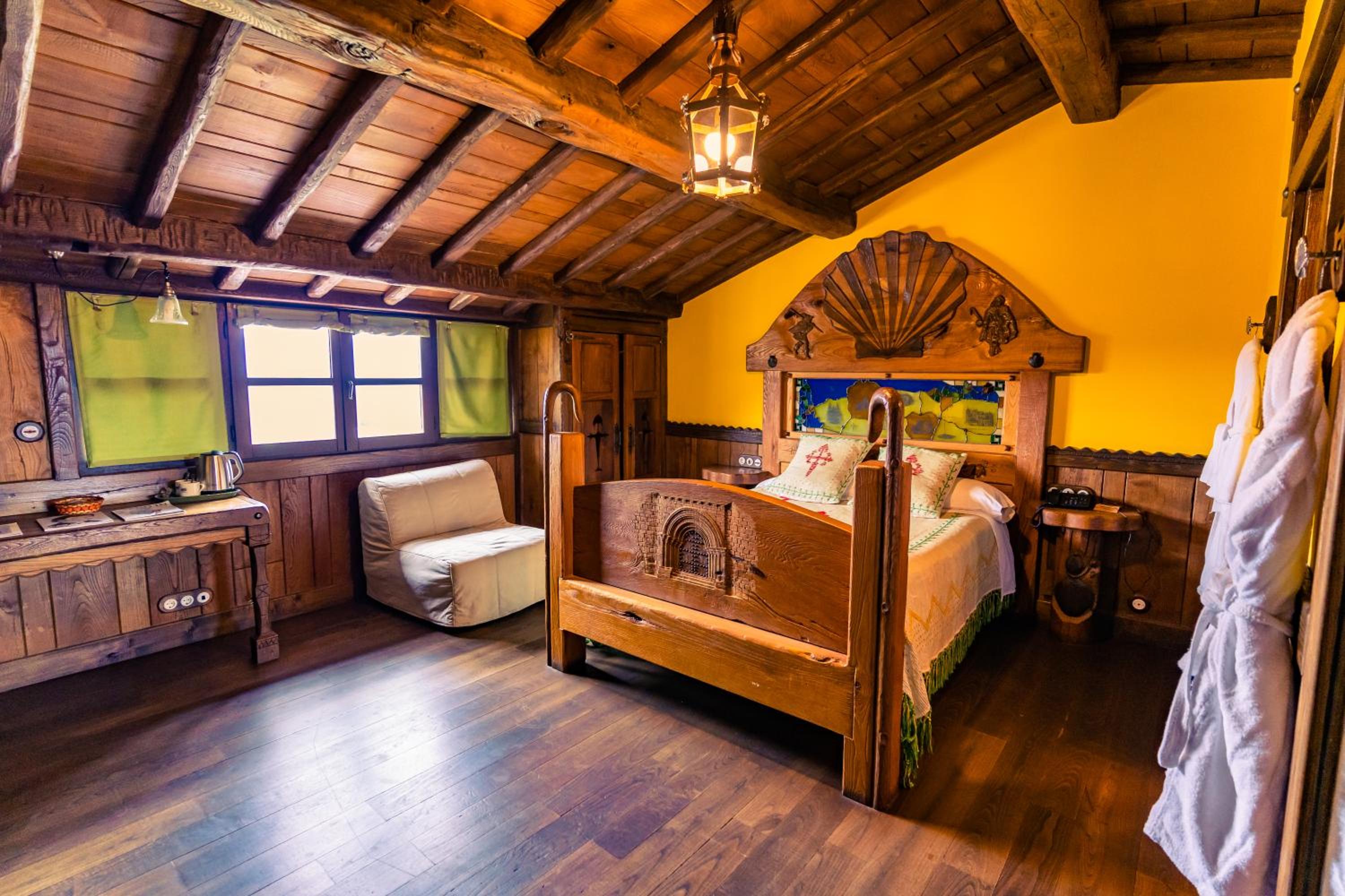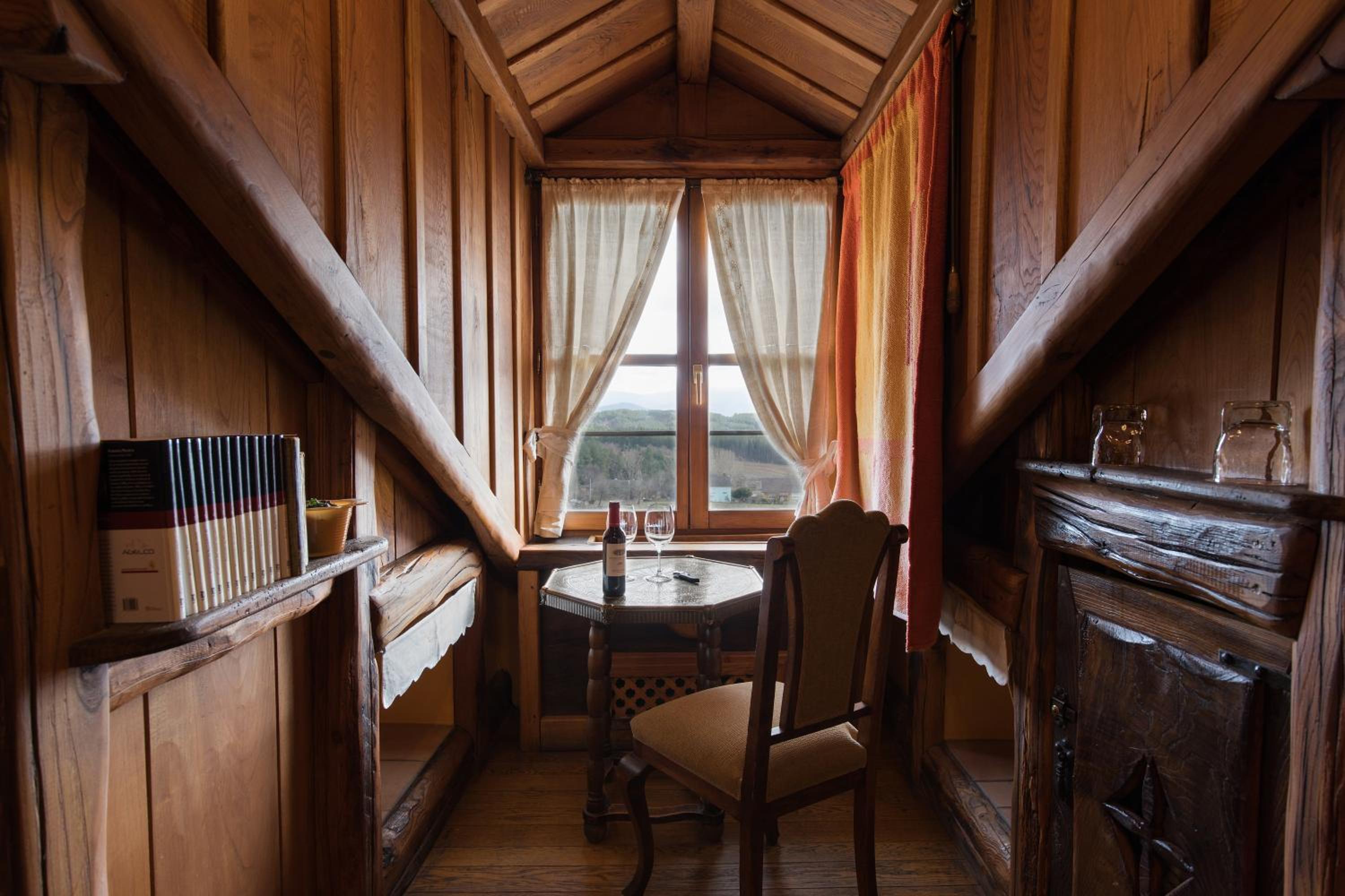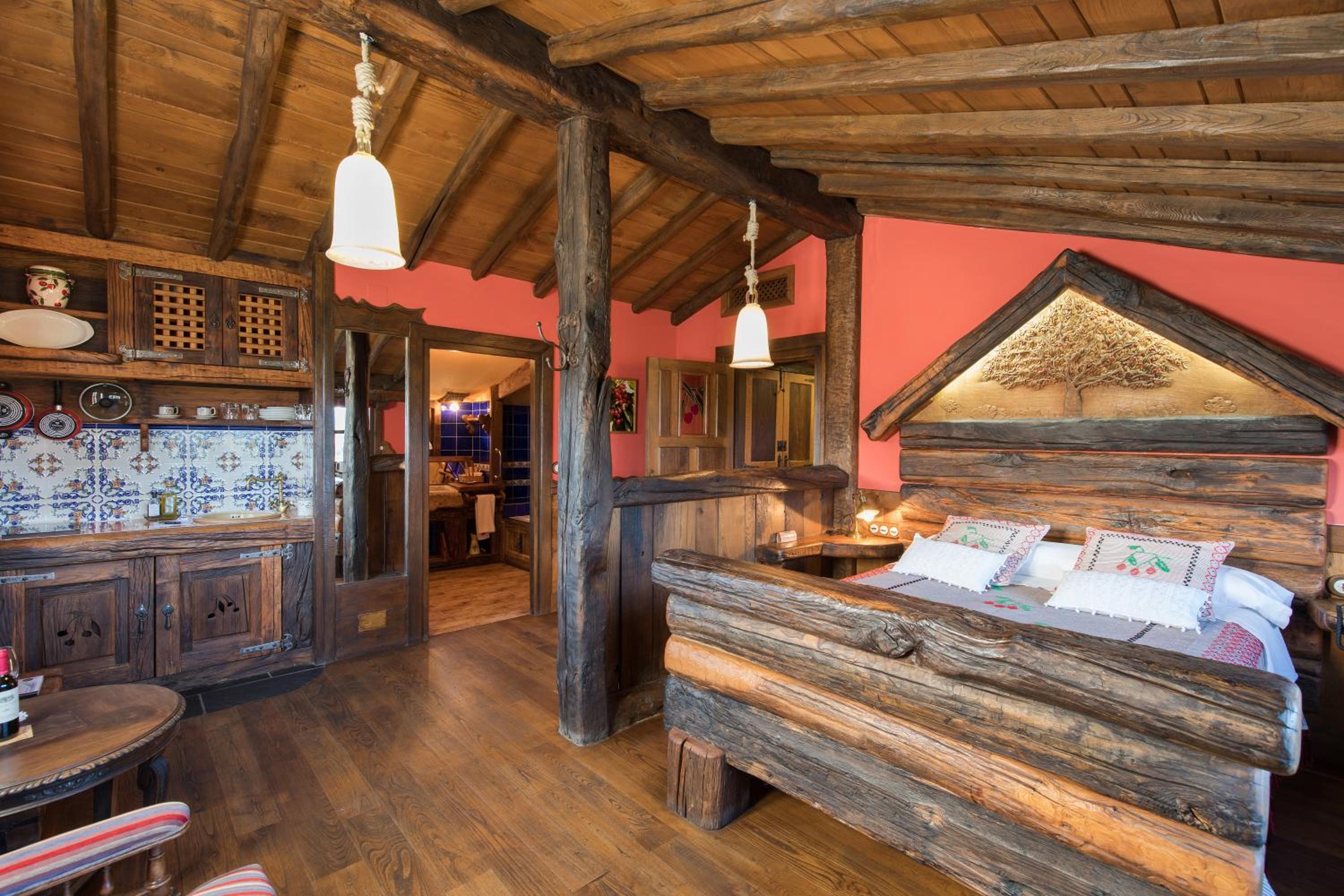 The wood details, and the staff of course, and the gastronomy, The silence, the car right next to the room, the bathroom,