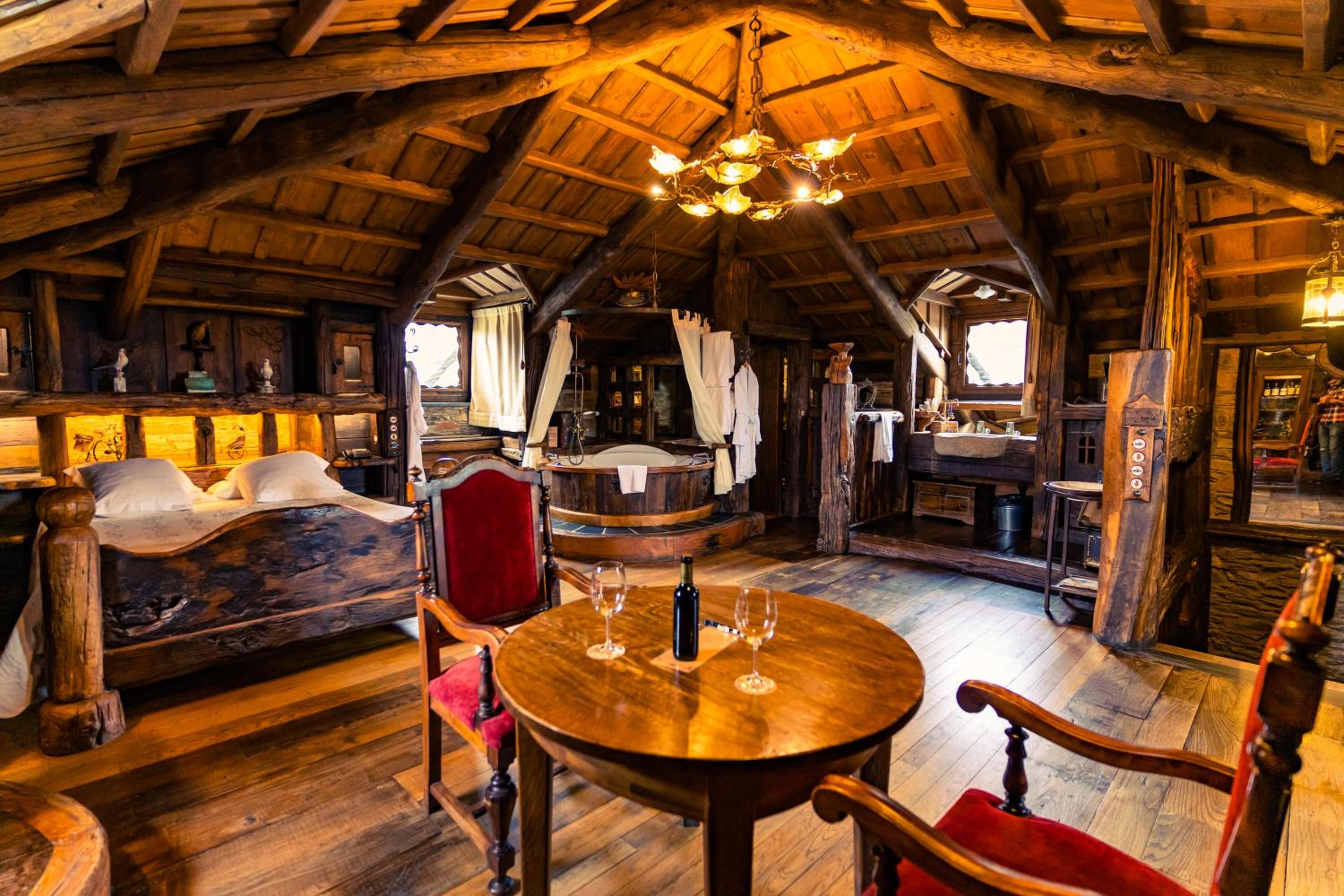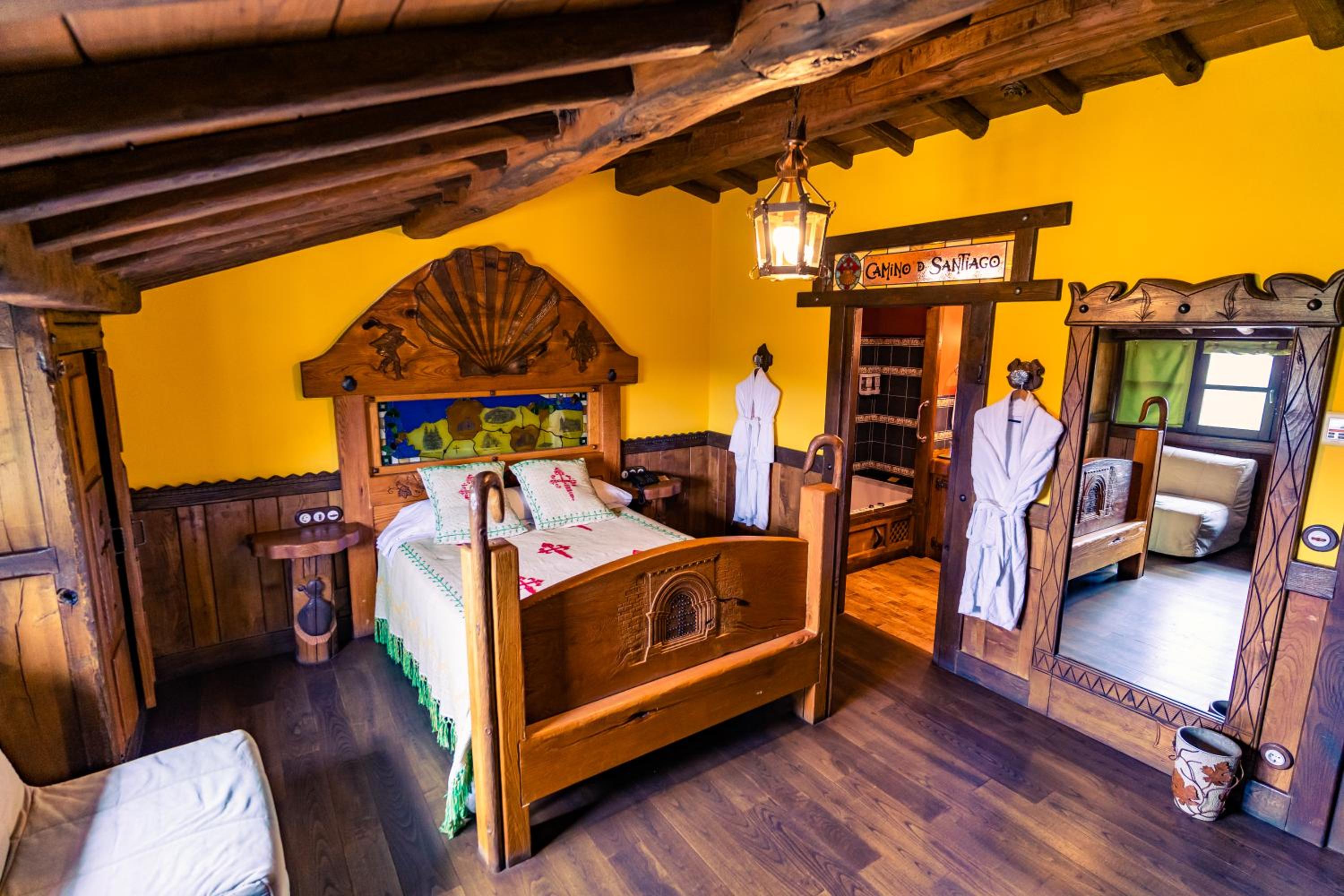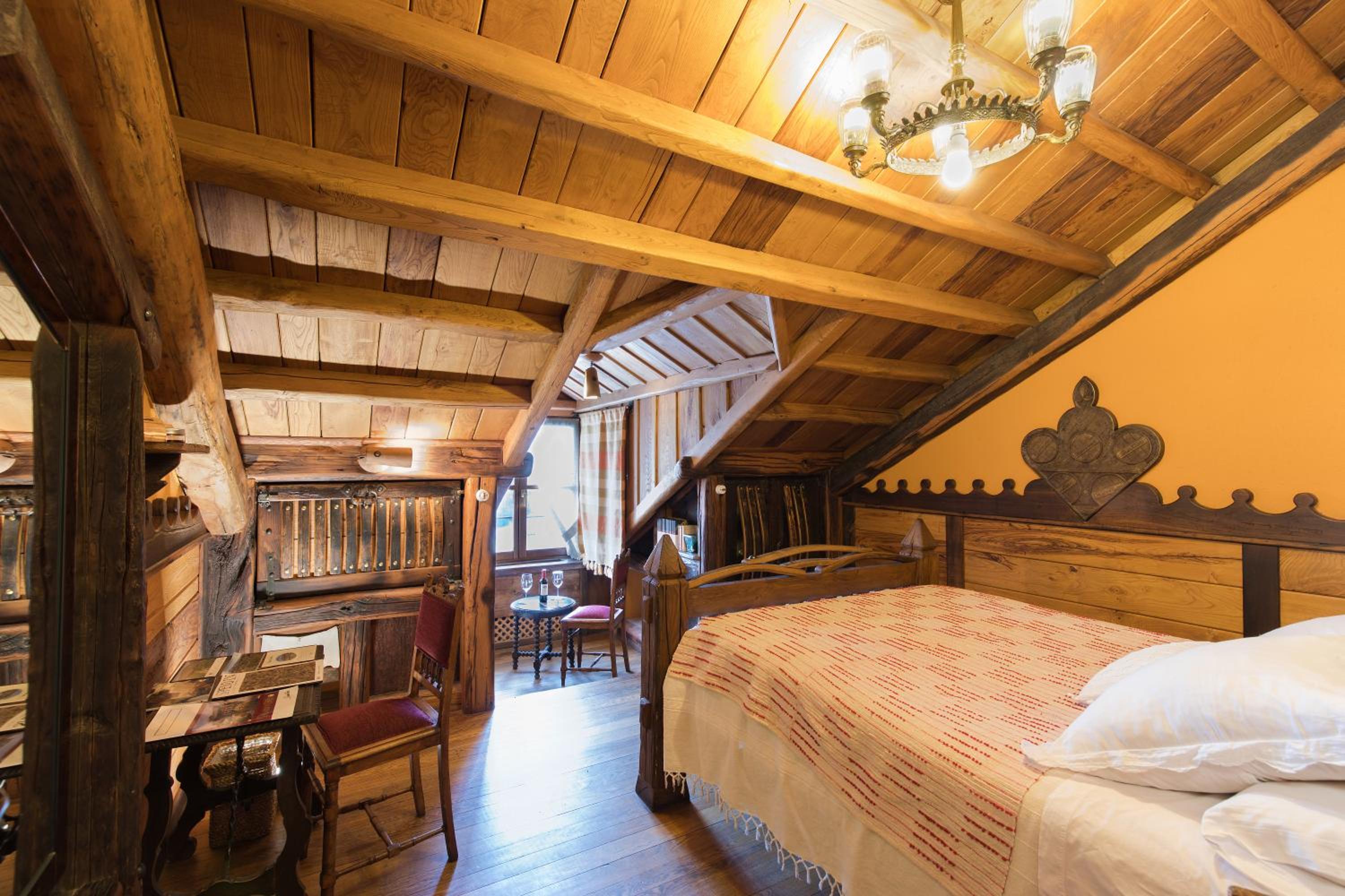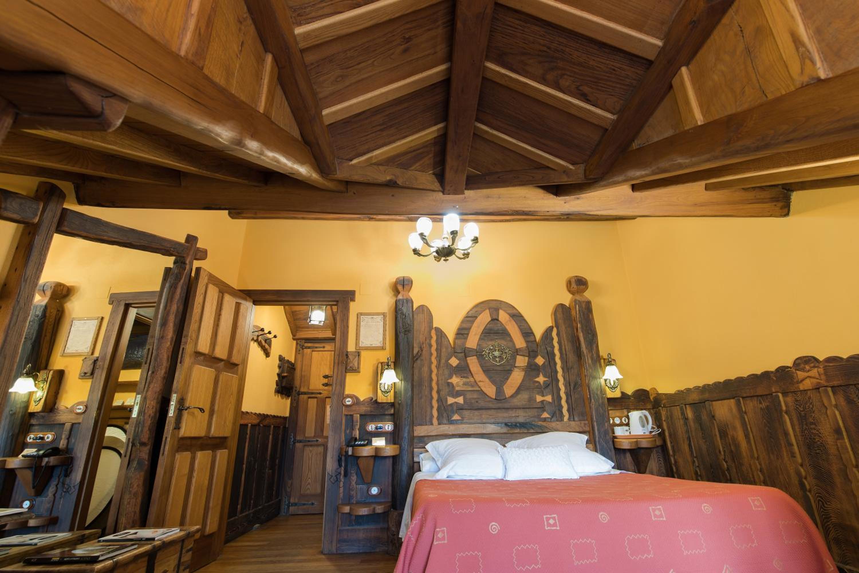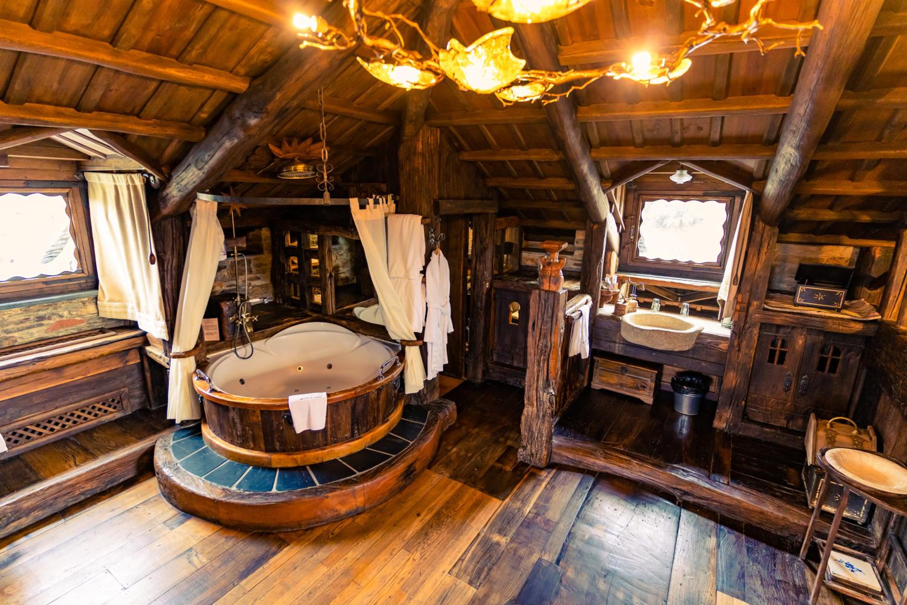 The wood details, and the staff of course, and the gastronomy, The silence, the car right next to the room, the bathroom,