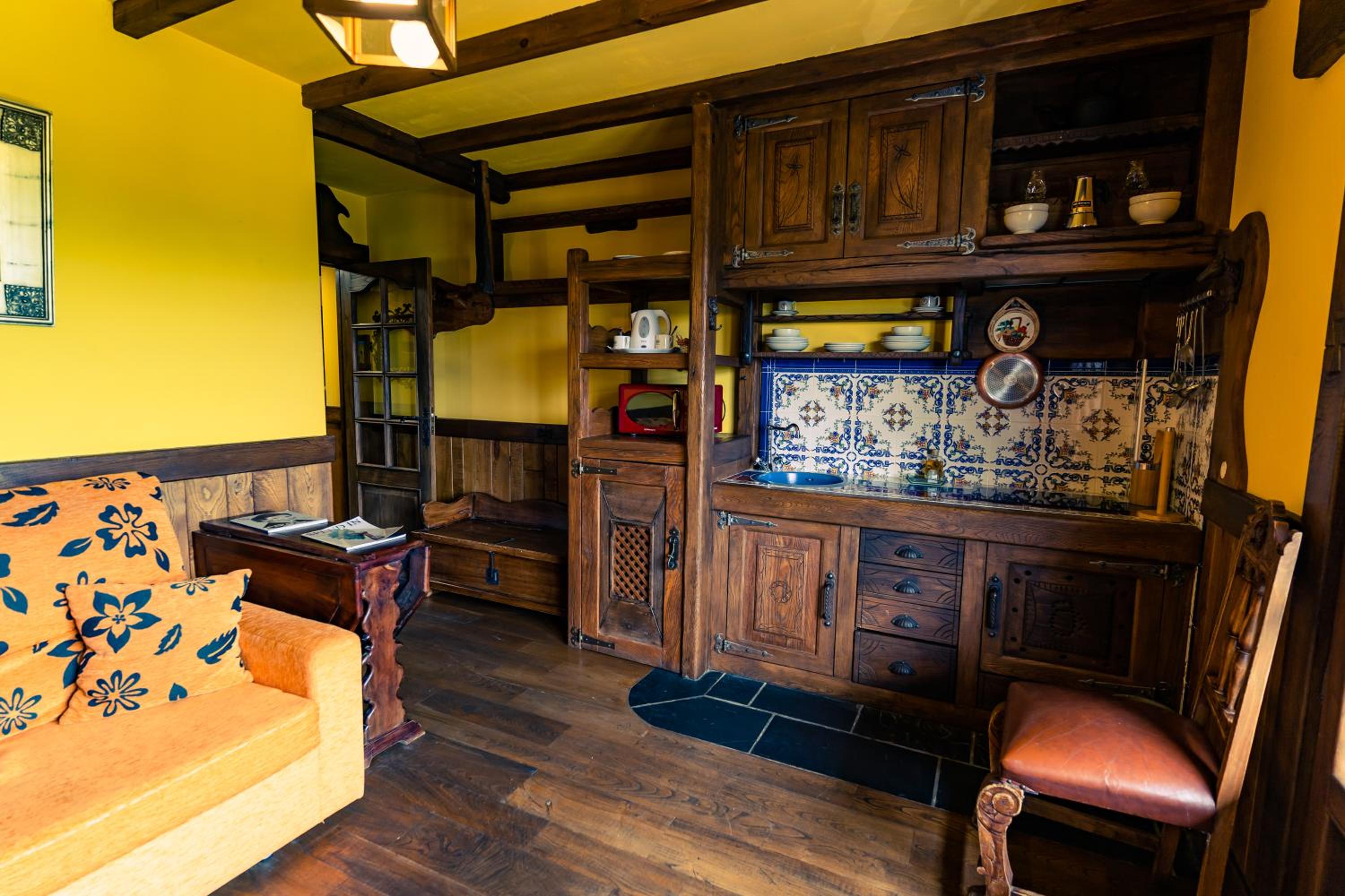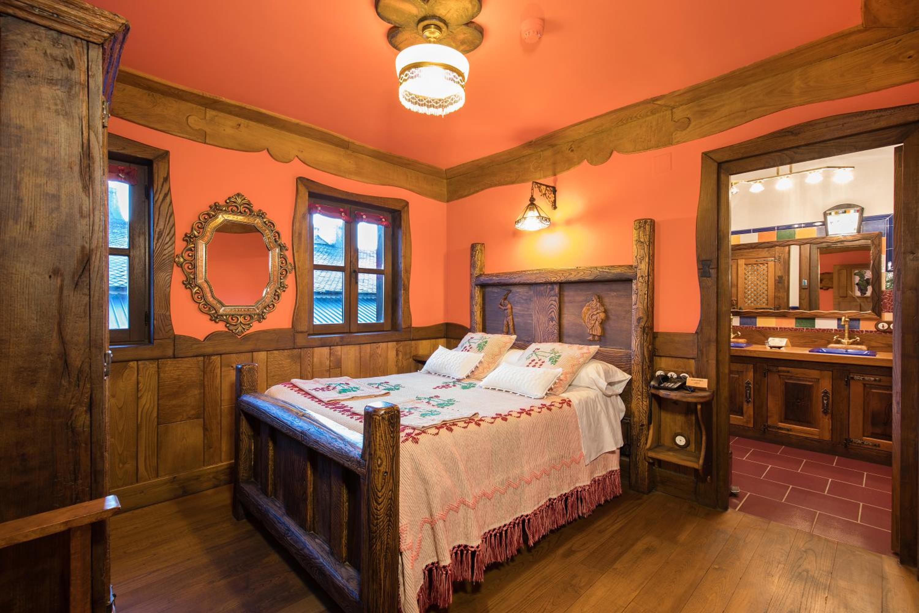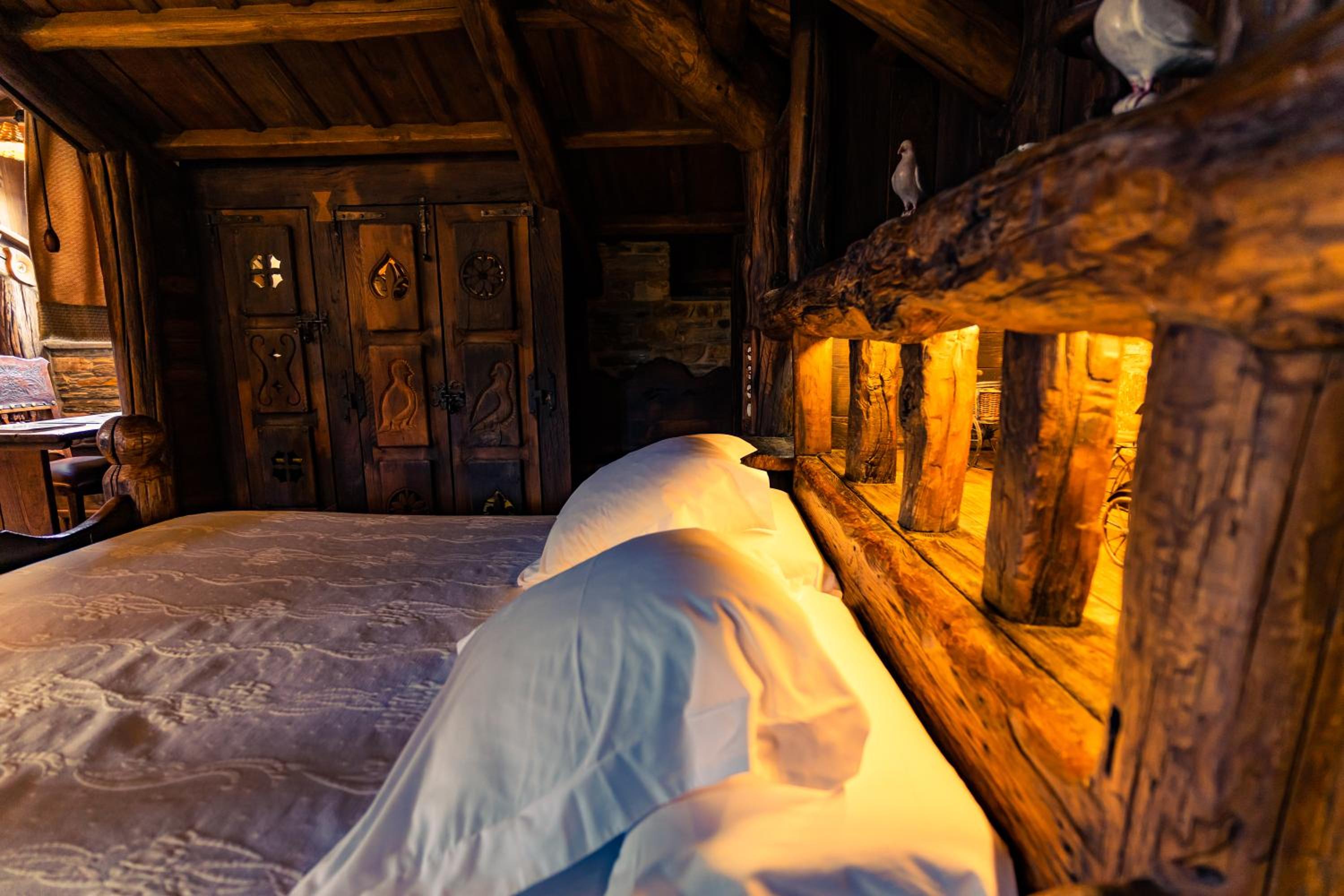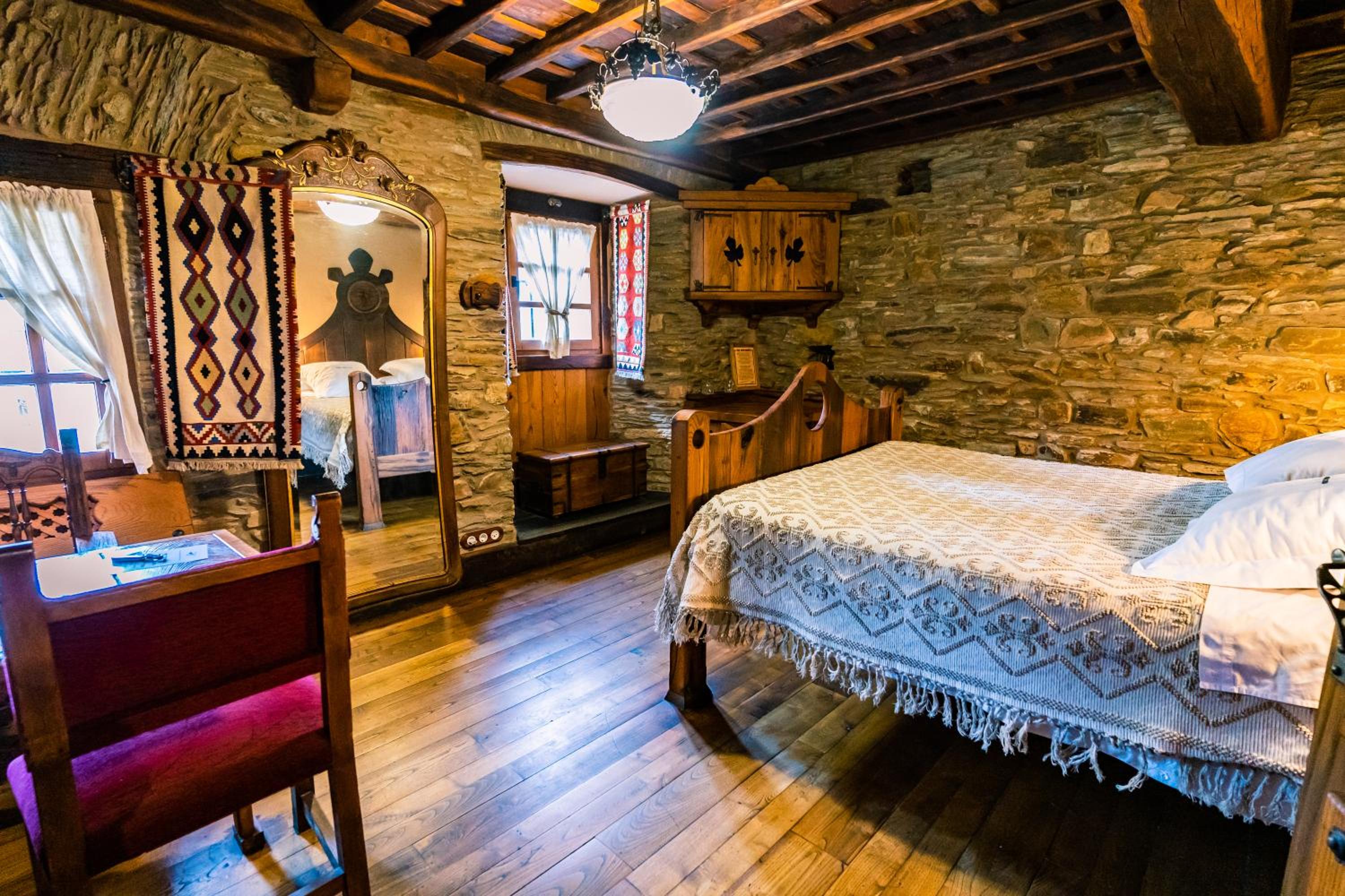 The wood details, and the staff of course, and the gastronomy, The silence, the car right next to the room, the bathroom,