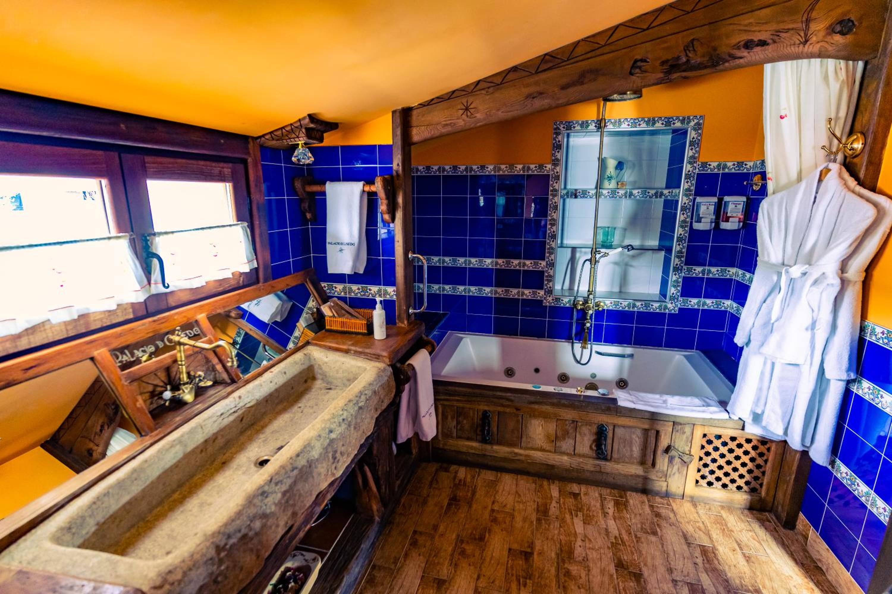 Experience the charm of an 18th-century palace surrounded by vineyards in Canedo. Each uniquely decorated room offers stunning countryside views and a luxurious hydromassage shower or bath. Indulge in regional delicacies at the restaurant and explore a variety of local wines. Take advantage of guided tours and nearby outdoor activities with convenient access to the A-6 Northwest Motorway. Book now to immerse yourself in the rich history and culture of Prada a Tope - Palacio de Canedo.