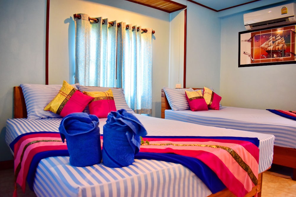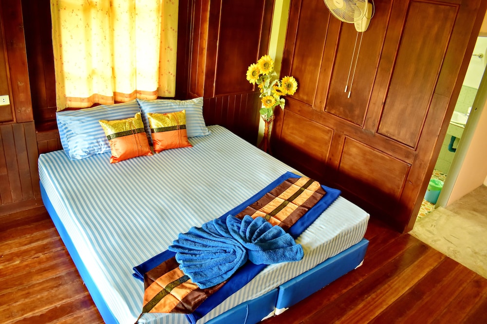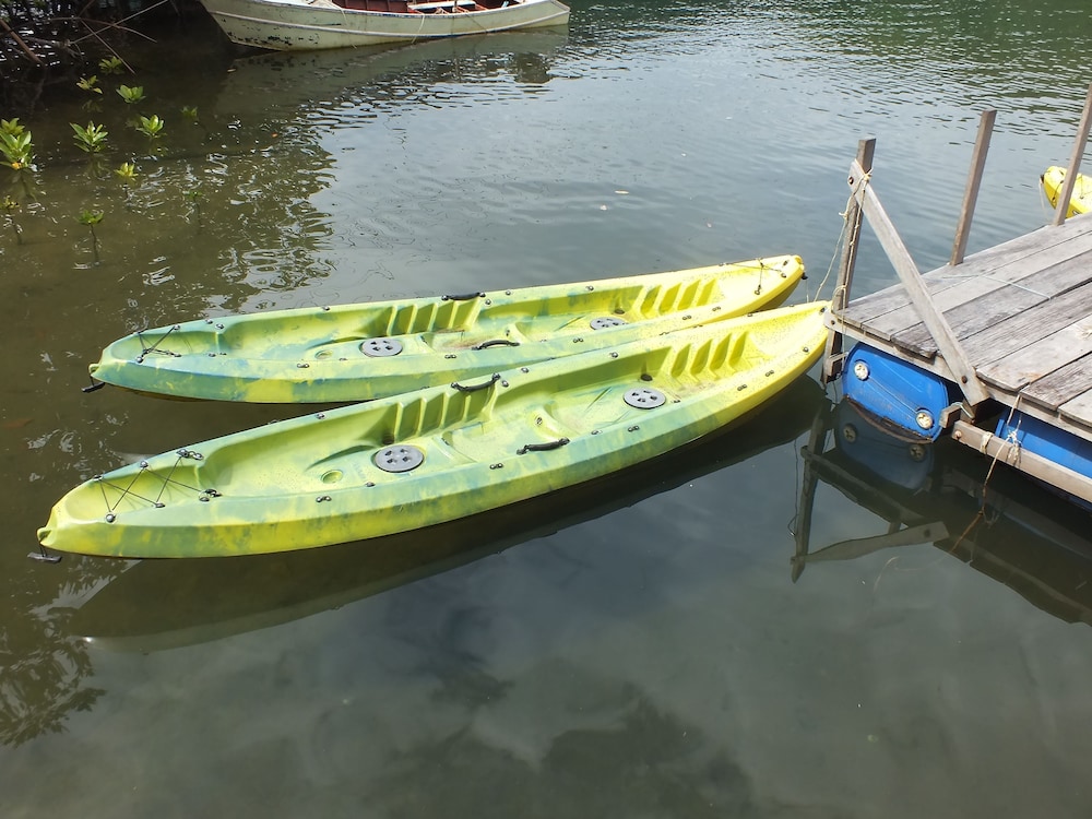 Gute Lage,schöner Bungalow in einem hübschen Garten und einem gepflegten Pool.Es gibt leider keinen Kleiderschrank aber eine Kleiderstange, Bügel zum Aufhängen mitbringen!Kein Kühlschrank, aber Minimarkt mit kalten Getränken vorhanden. Gutes Frühstück, Kaffee ist halt nür löslicher Kaffee.Dafür aber den ganzen Tag.Restaurant ok,nette Lage am Fluß mit Bootsanleger und ankommenden Booten von den Nachbarinseln. Kayaks den ganzen Tag gratis nutzbar.Staff spricht nicht viel Englisch,daher etwas unbeholfen aber nicht unfreundlich.Zum Strand kann man in 5 Minuten durch die gegenüberliegende Anlage gehen. Hatten dort herrliche 2 Wochen Urlaub!