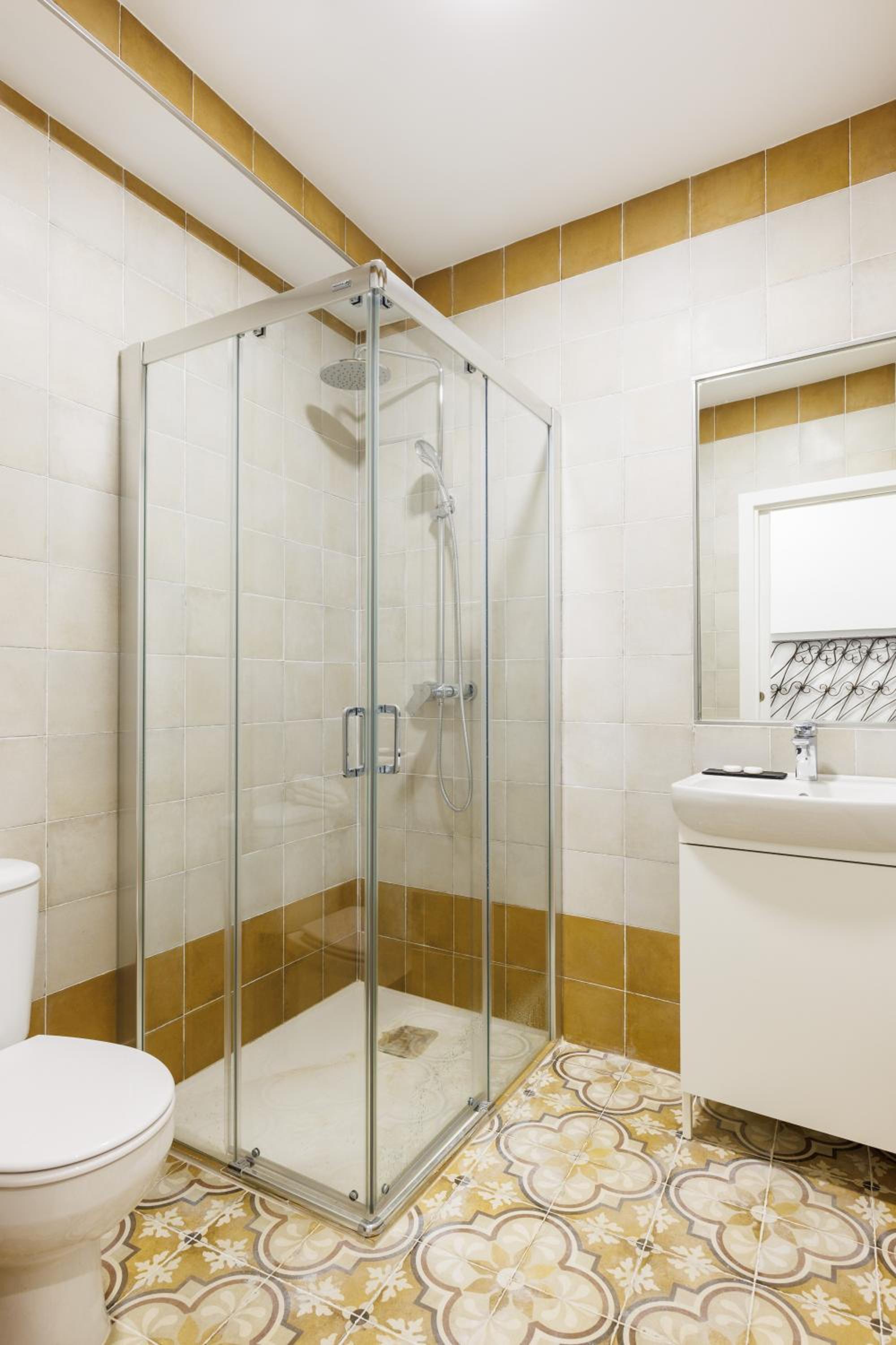 Great location. Lovely interior with mix of mix of old and modern design. Spacious bathroom.