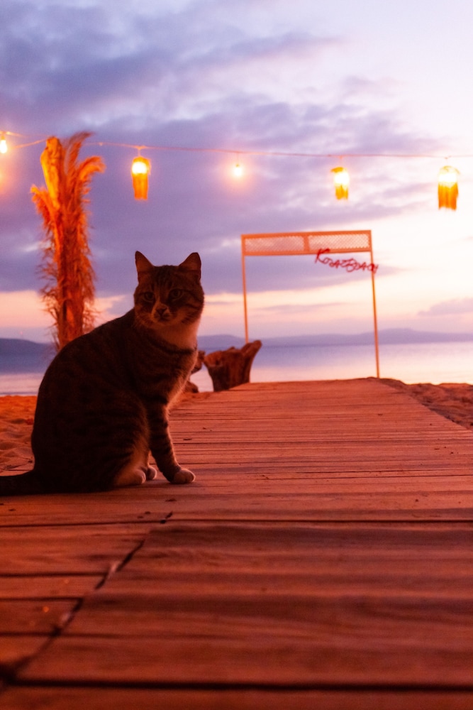 Tatilimizi cok keyifli gecirdik, konum cok güzel, ahsap odalar cok tatlı dösenmis ve cok modern görünüyordu. Denize sıfır, denizin dibi kum, su sıcaklıgı Temmuzda harikaydı. Sıg ve temiz bir denizi var, konaklayan misafirler icin güzel locaları var. Cıtır tavuk patatesi harika. Kahvaltı menüsü beklentimizin cok üzerinde cesitli ve güzeldi. Tek elestirim müzik sesinin gündüz ve gece de fazla yuksek olmasıydı. Eger sessiz sakin bir tatil arayısındaysanız biraz rahatsız edebilir. Bunun dısında harika bir tatil gecirdik. (Not: aksam dısarda otururken yanınıza sinek kovucu bir sprey almayı unutmayın, bölgede biraz sinek oluyor)