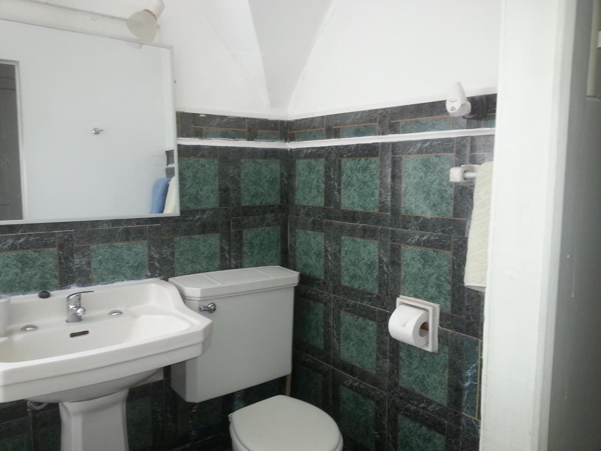 El baño igual muy viejo todo descuidado una tina en su interior pintada de blanco con pintura de pared eso no lo había visto