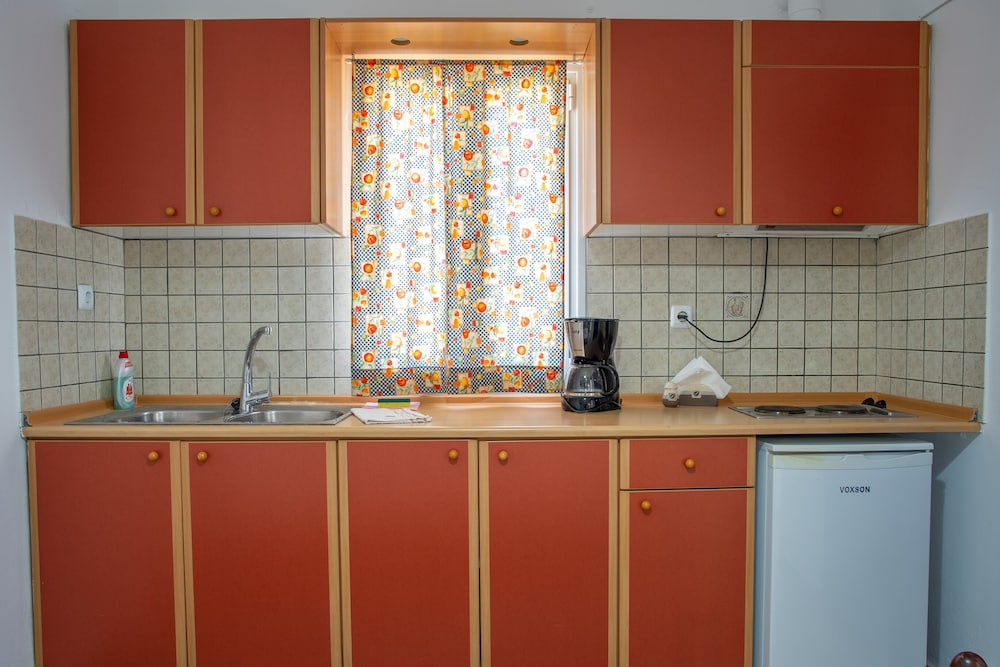 Nice welcome by Ekaterini. She even offered us lemonade and cookies which was very appreciated. The gardens and common space are nice. The apartment is small for four people, but it was clean, though the kitchen was a little outdated. Main problem is with the location. It shows up as being downtown but it’s in the Livadia beach area, 15 minutes out of the center… Overall it was a pleasant stay.