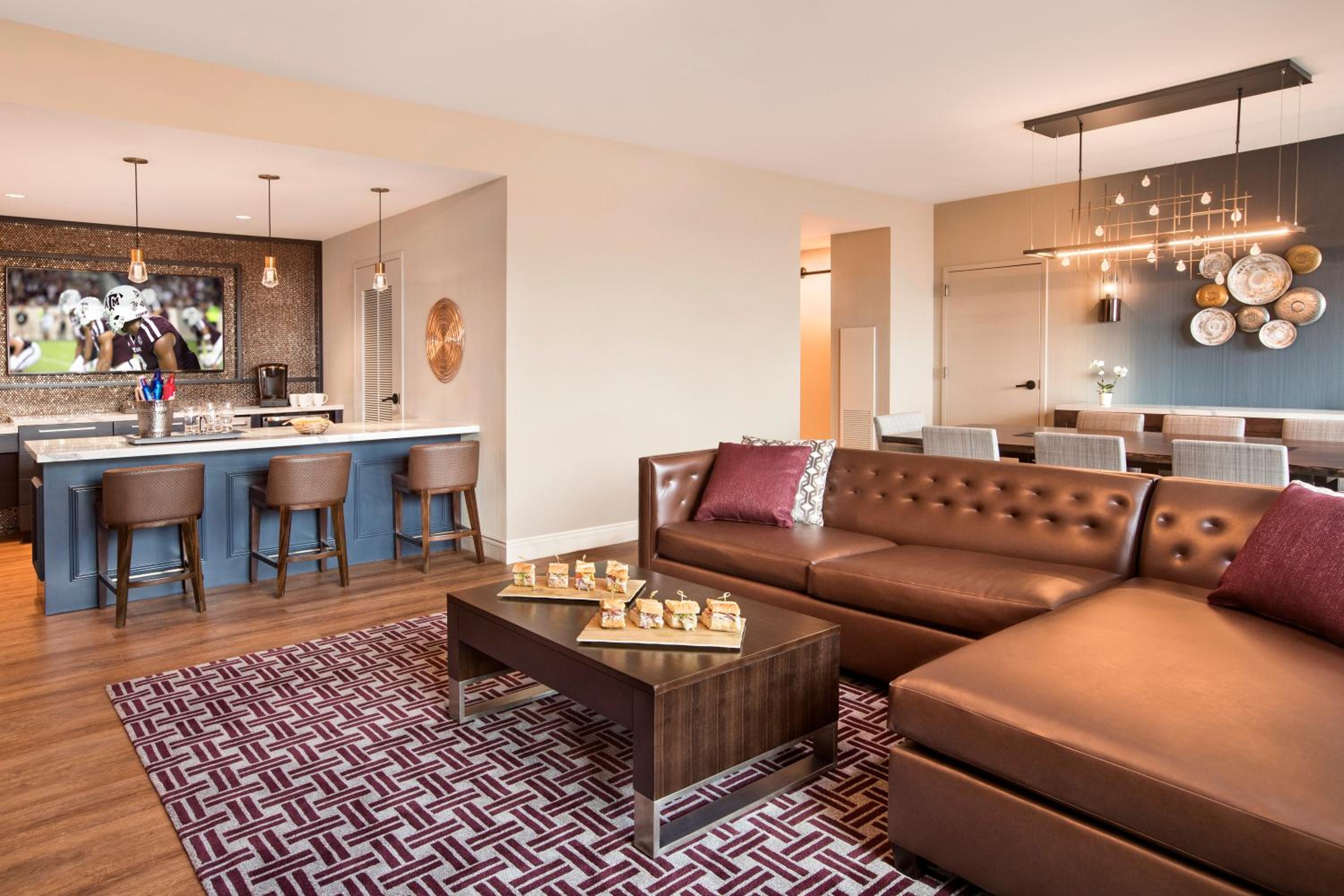 Unwind by the outdoor swimming pool or maintain your fitness routine at the well-equipped fitness center. After a day of exploring College Station, indulge in delectable cuisine at the on-site restaurant or enjoy a refreshing drink at the bar.