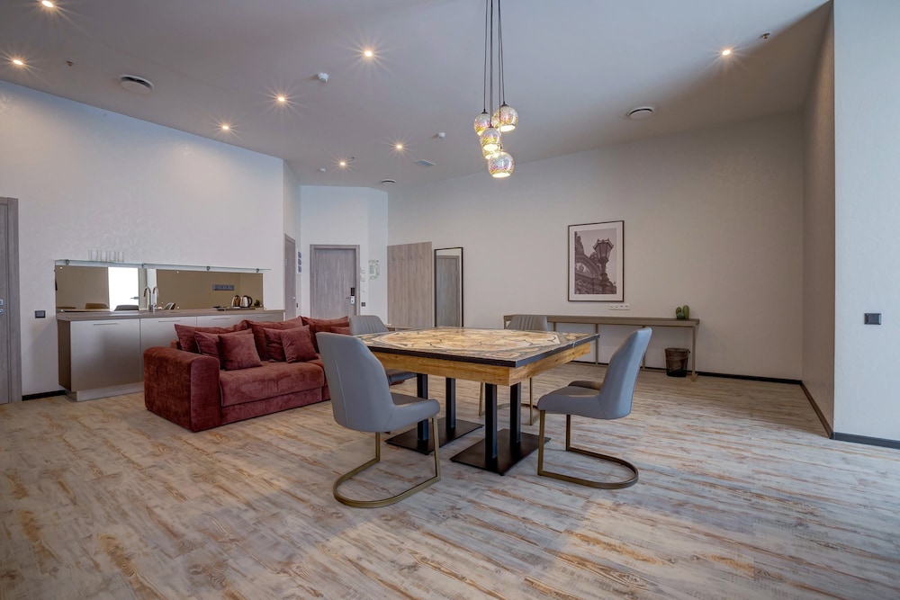 Todella ystävällinen palvelu ja erityiskiitos vastaanottotiimille ja sen vetäjälle, jotka auttoivat meitä matkustusdokumenttien kanssa, joka oli meille vaikeaa kielimuurin vuoksi. Piterlandin ostoskeskuksessa on paljon palveluita samassa rakennuksessa, johon on helppo mennä hotellista suoraan sisäkautta.
