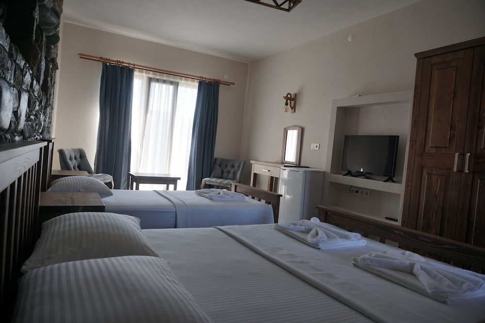 Otelden genel olarak çok memnun kaldık, yemek servisleri çok hızlıydı ve çalışanlar her zaman çok güler yüzlüydü. Otelin kahvaltısı özellikle çok güzeldi, akşam yemeğini de bir akşam otelde aldık ve hem lezzetliydi hem de otel diye fahiş fiyatlar yok. Otel Laz koyu plajına 300 metre yazıyor ama sıcakta yürünecek bir yol değil gidecekler için söylüyorum, biz motorumuzla gittiğimiz için bu konuda sıkıntı yaşamadık otelden 2 dk içinde plajdasınız. Odamız güzeldi, havlu, terlik, şampuan, duş jeli, banyo lifi, kettle, çay, kahve, tv gibi tüm ihtiyaçlar odada mevcut. Çamaşırlarınızı asabileceğiniz ve oturabileceğiniz küçük bir balkon bulunuyor. Konum olarak fazla rüzgar alan bi yer özellikle odadayken çok fazla hissediliyor hatta bazen korkunç olabiliyor. Oda temizliğini yapan çalışanlardan biri çıkacağımız gün kapıyı çalmadan odaya girmeye çalıştı ama bunun bi yanlış anlama olabileceğini düşünüyorum. Genel anlamda memnun kaldığımız bir yer oldu, bir akşam sipariş ettiğimiz Türk kahvesini unuttukları için kahveyi ve yanına koydukları dondurmayı ikram ettiklerini söylediler bu hareket çok hoşumuza gitti. Kısacası ailenizle gelip kafa dinleyeceğiniz sakin huzurlu bir yer. Yine gelsek yine tercih edeceğimiz bir yer olur.