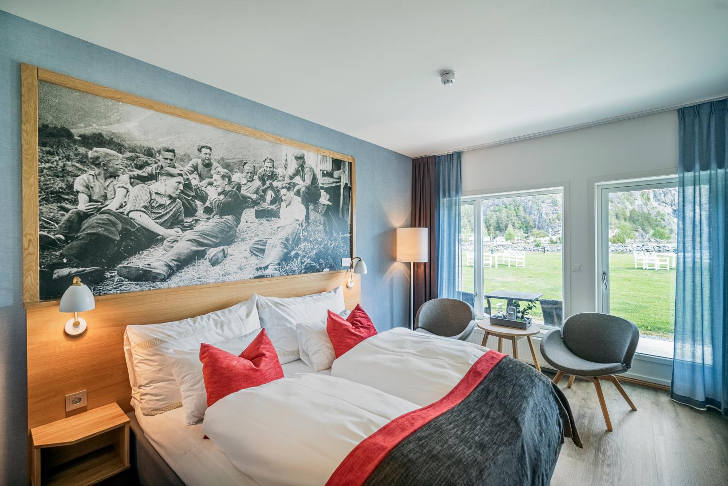 - Exceptional location directly on the fjord, with rooms opening to a peaceful waterfront area and amazing views of surrounding mountains