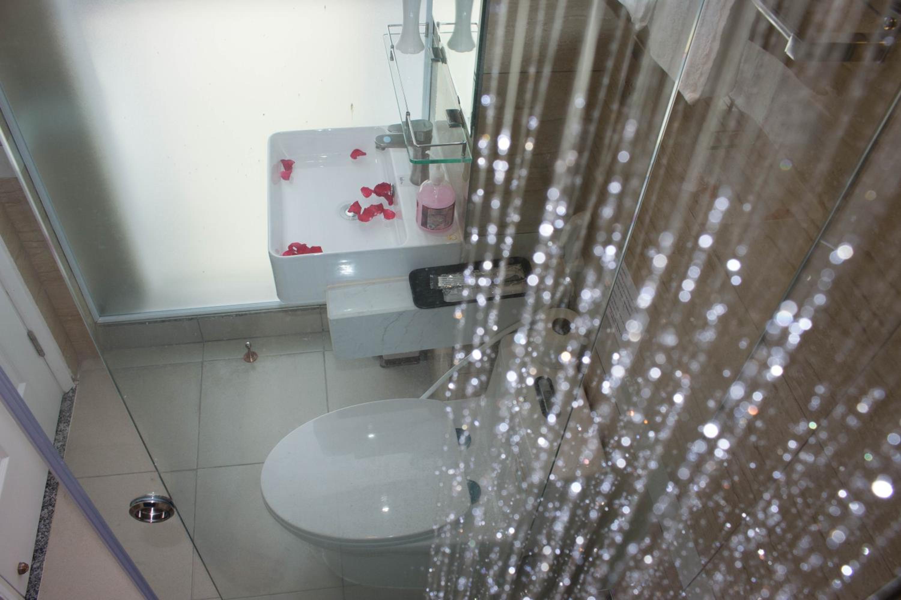 Les toilettes étaient trop proches de la paroi de la douche, donc difficile de s'asseoir.