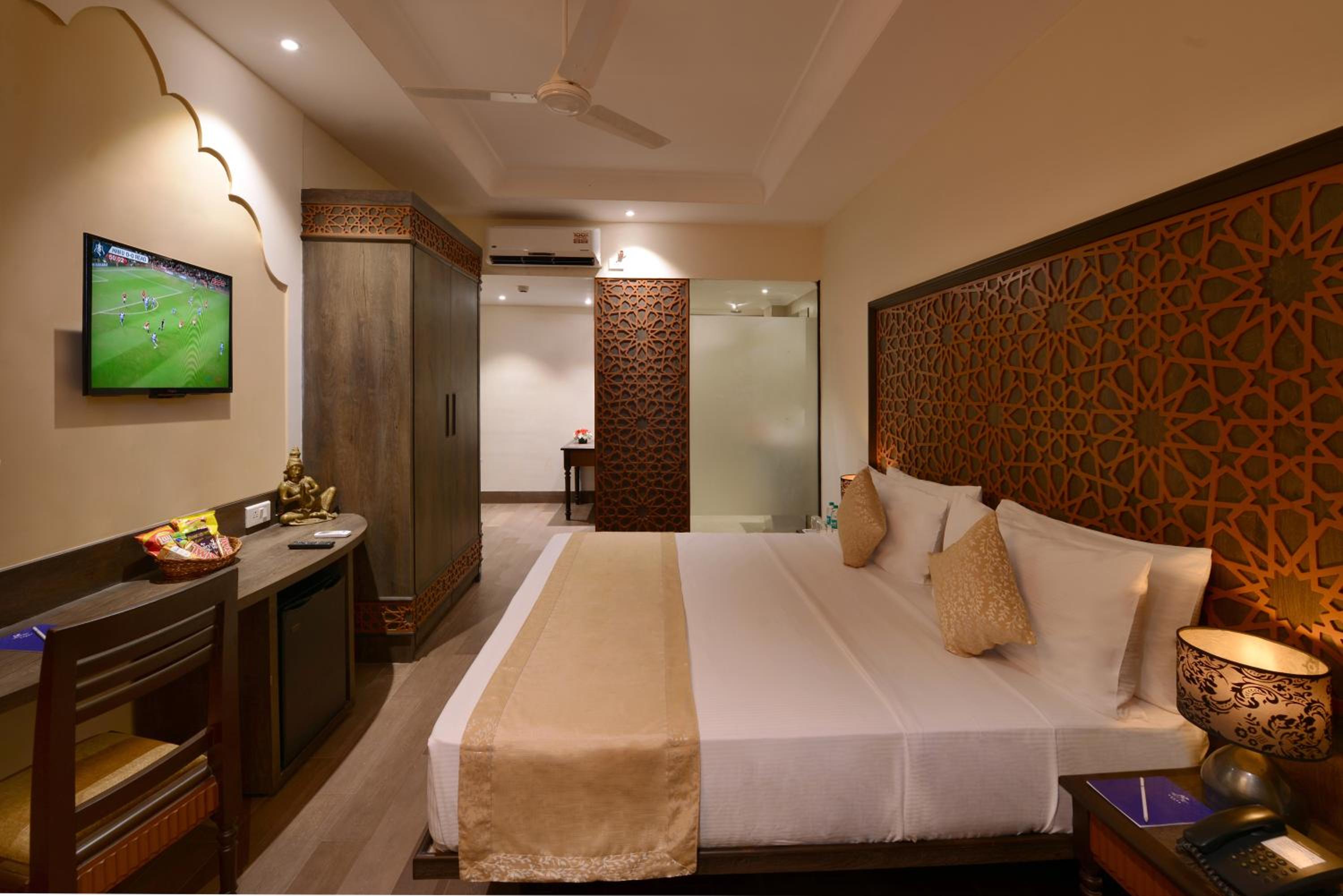 No welcome drink provided, no kettle in the room, no packaged water, no toiletries. Very very basic amenities. Very far from the happening places. Not even one restaurant near by 1.5 KM radius. Very very limited buffet breakfast with 2 to 3 varieties. Most of the staff will not even greet you with a smile. Overall our stay was not satisfied, we just passed our days of stay and nothing much.