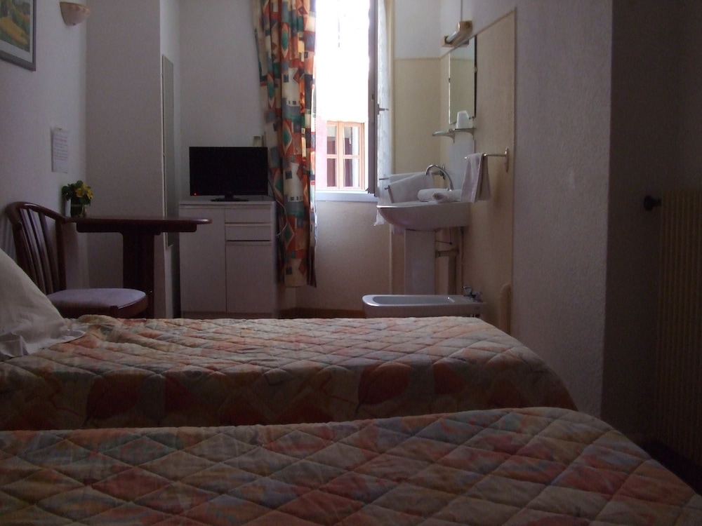 Accueil sympathique. Hôtel en plein centre ville, ce qui est appréciable.Petite chambre confortable au dernier étage, avec sanitaire à l intérieur . L hôtel n est pas récent mais possède tout le confort. A recommander.