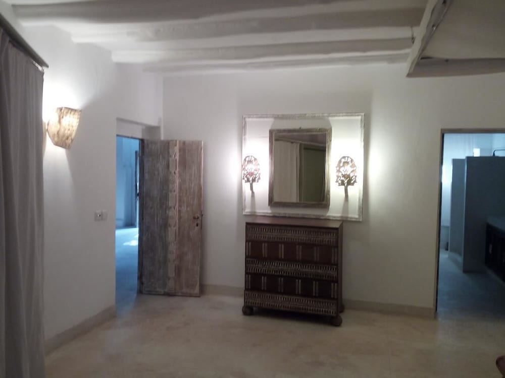 We stayed in a very spacious triple room, with own nice bathroom and air-conditioning. The room was very beautiful by its interior and its nice traditional African furniture (made on the premises).