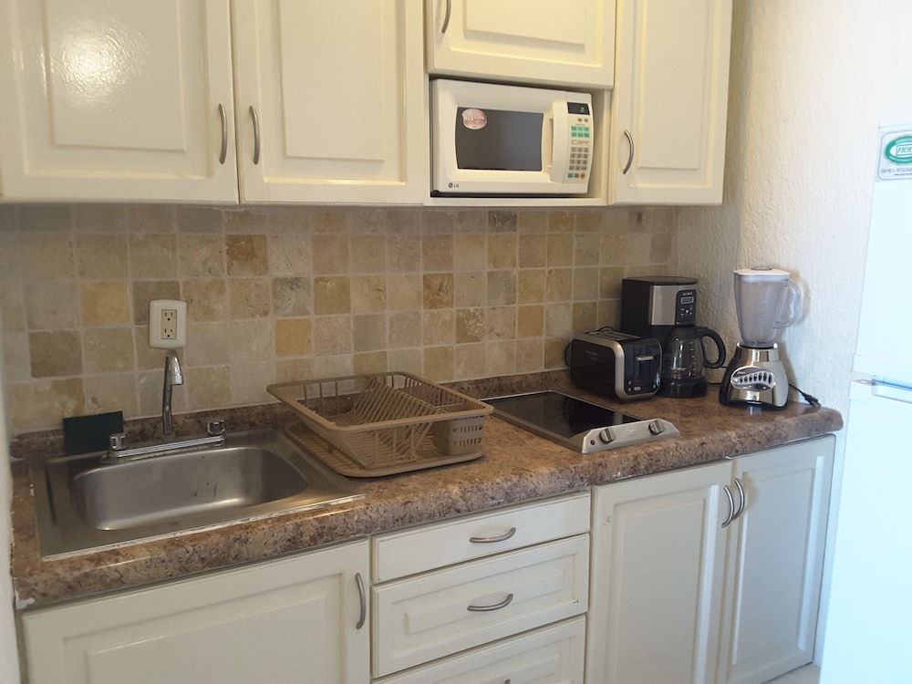 so this was a nice little suite with two beds and a kitchenette (c/w cooktop and filtered water.) It had a nice patio which looked over the bar and you could see the ocean from there too. It had a tv with cable and netflix, and a friendly manager (Miriam)