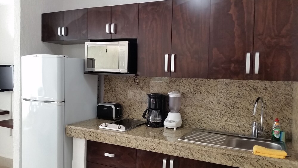 -no access to amenities. There's an Oxxo about three blocks away. But the hotel has a buffet restaurant, and a small commissary where i was able to buy some sugar (neither the suite, nor the restaurant had sugar)