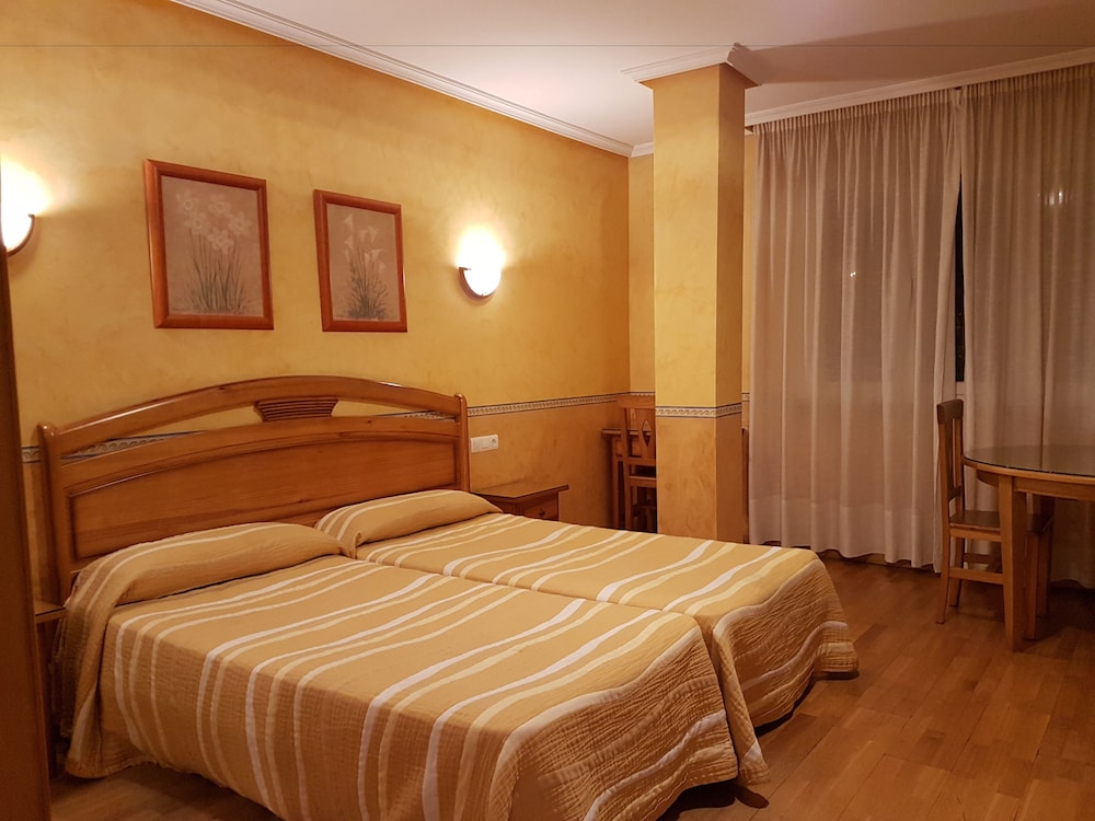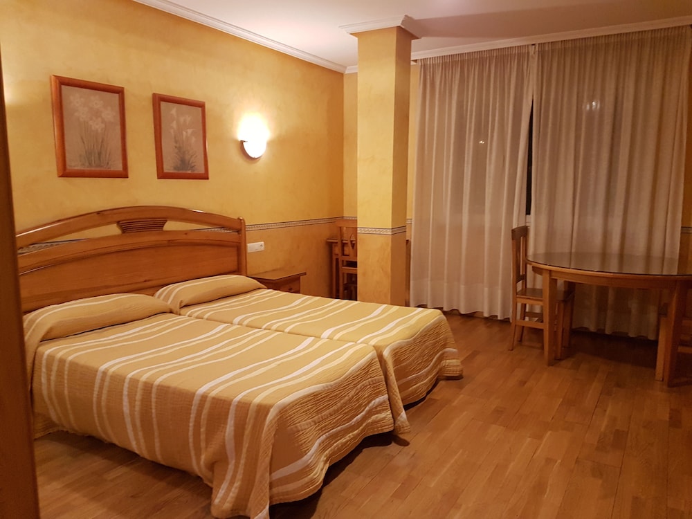 Es un hotel muy sencillo pero muy bien arreglado y muy limpio. El hecho de que tenga cafetería y restaurante es muy cómodo. Se puede aparcar sin problemas justo al lado gratis.