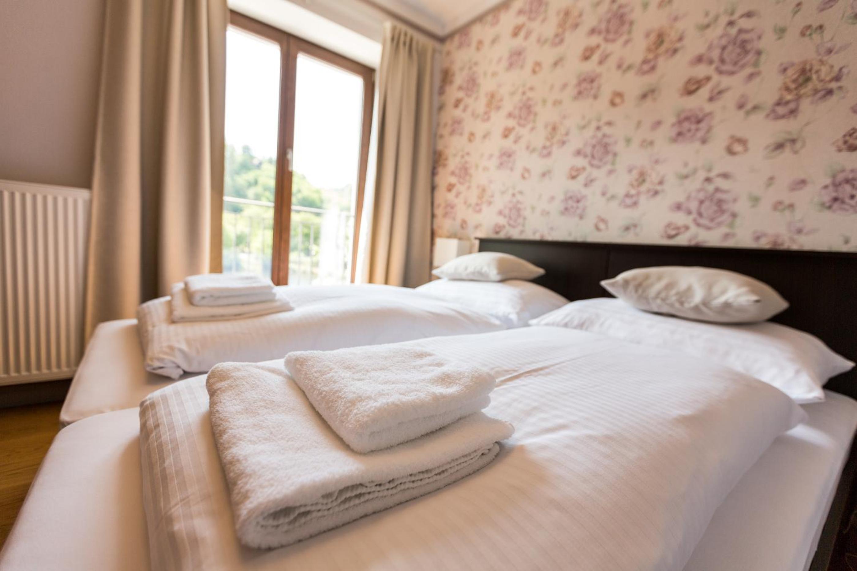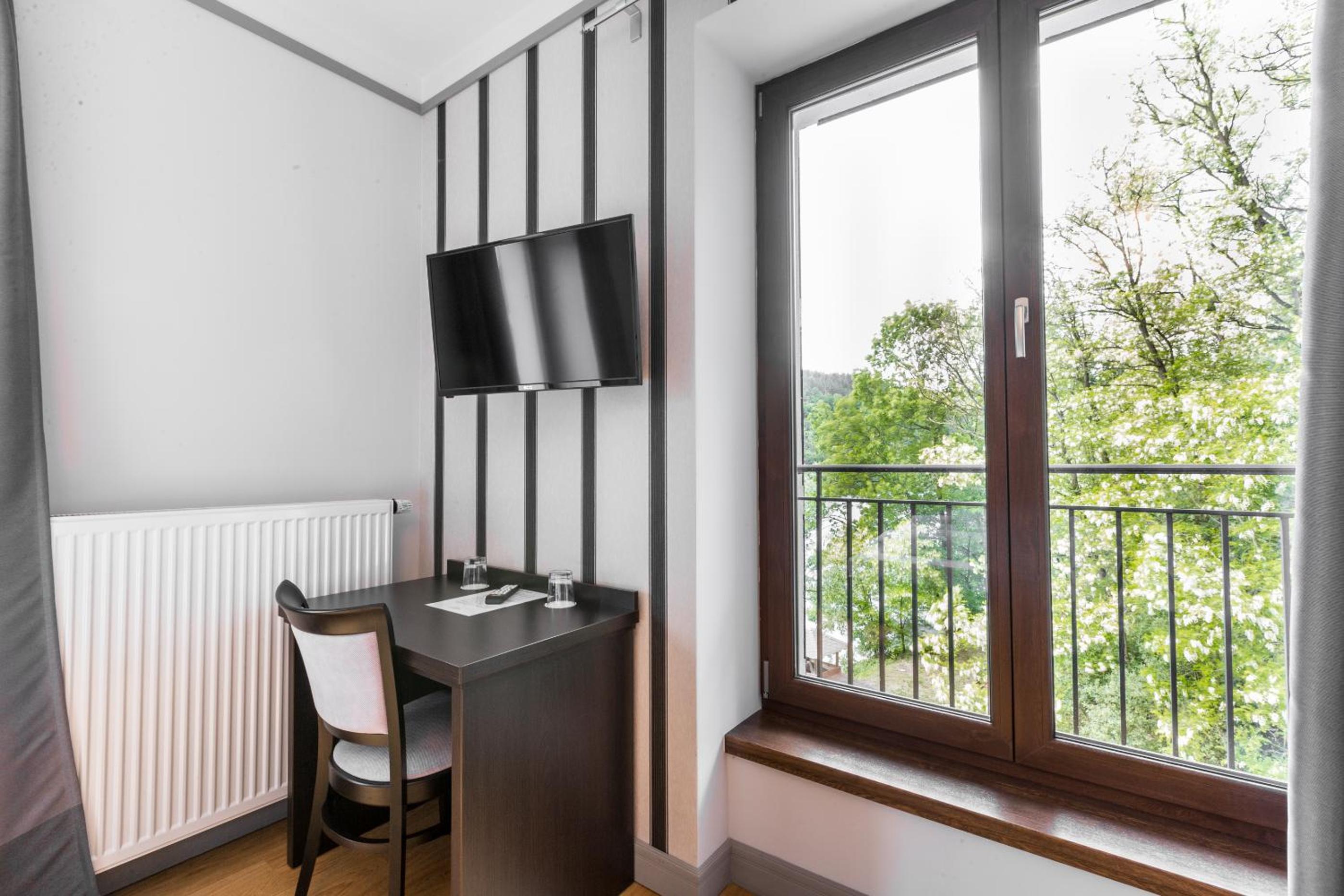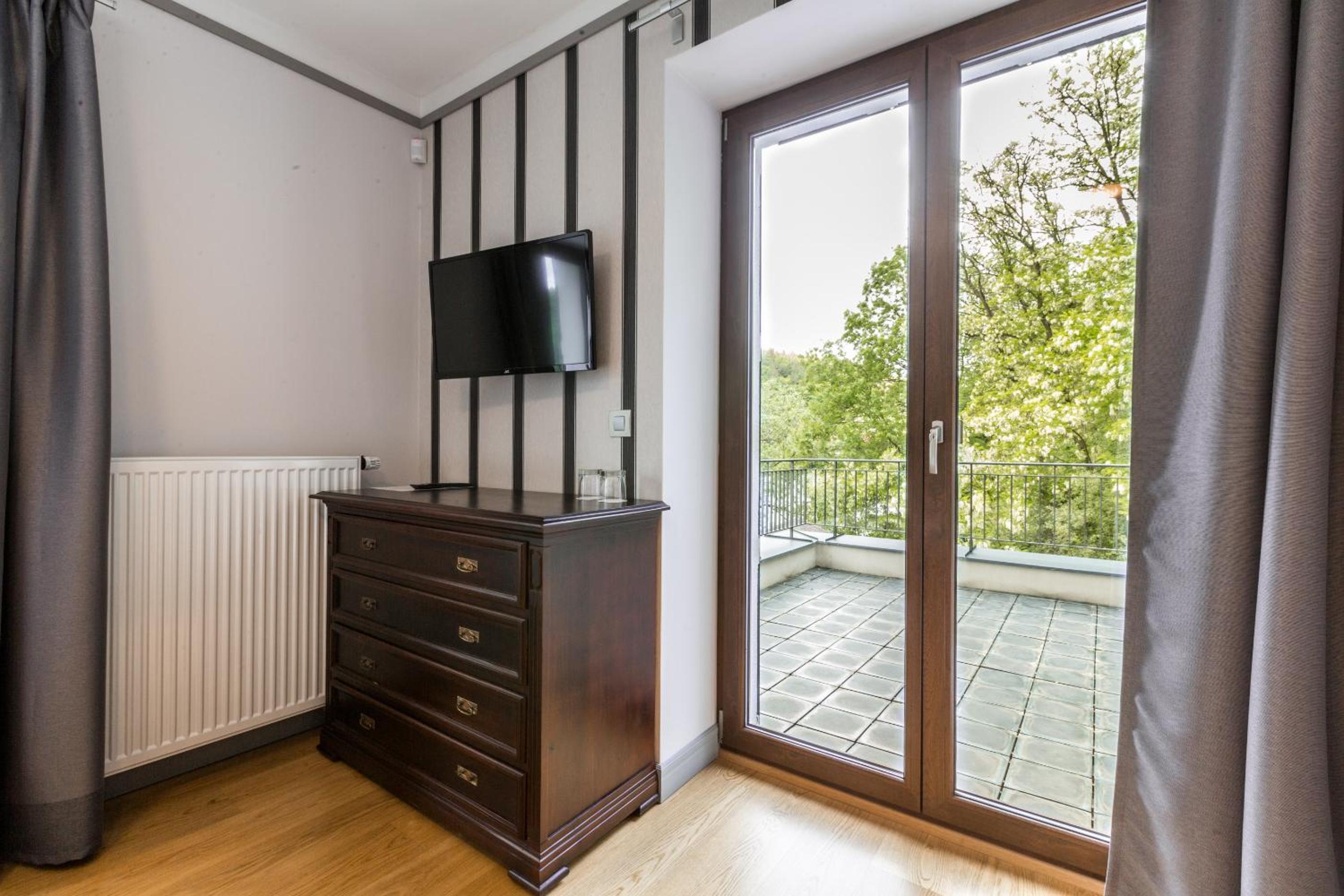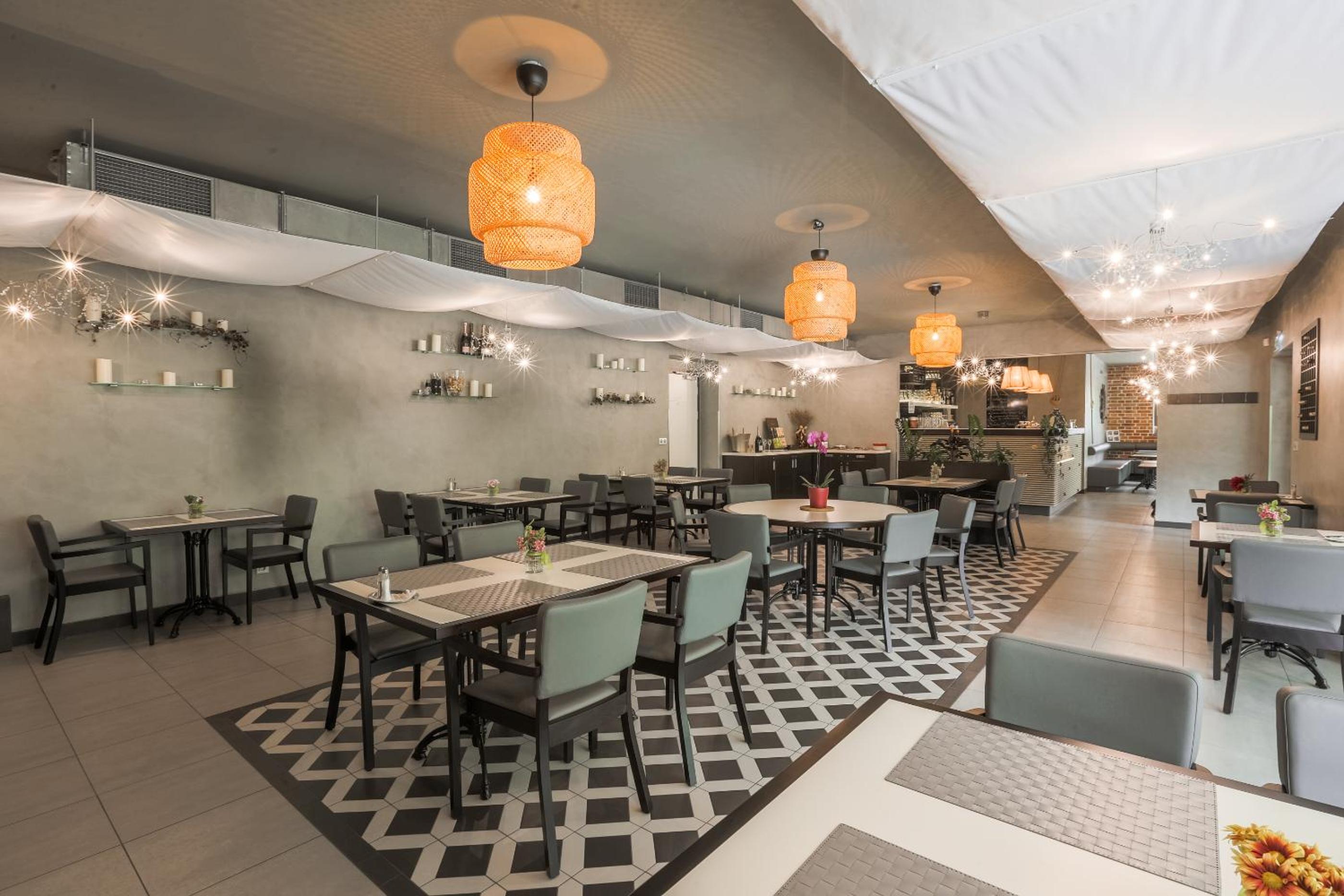Hotel Mandát boasts a tranquil garden, perfect for relaxing strolls or enjoying a delicious meal at the on-site restaurant. Guests can also unwind on the terrace with a refreshing drink from the bar.