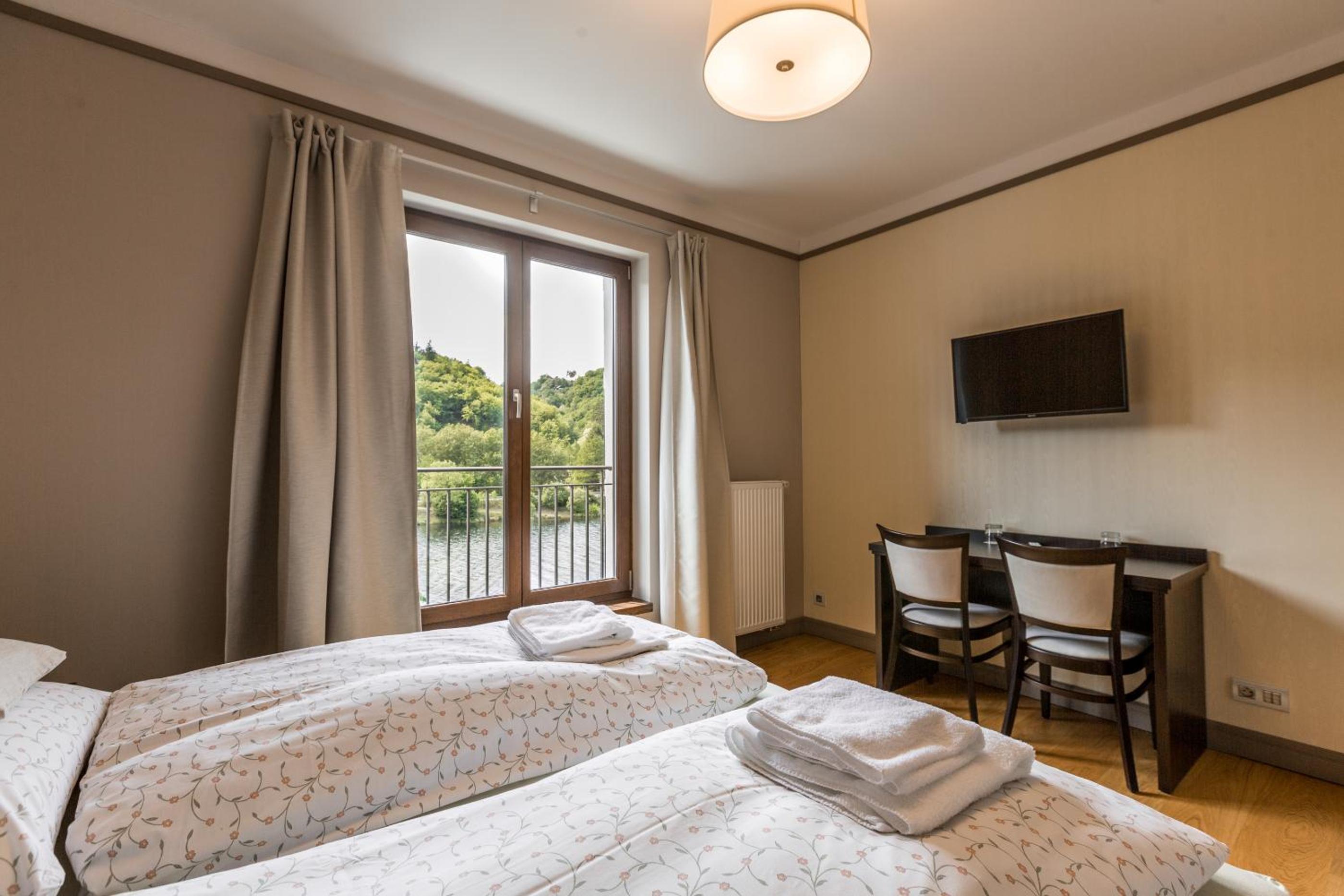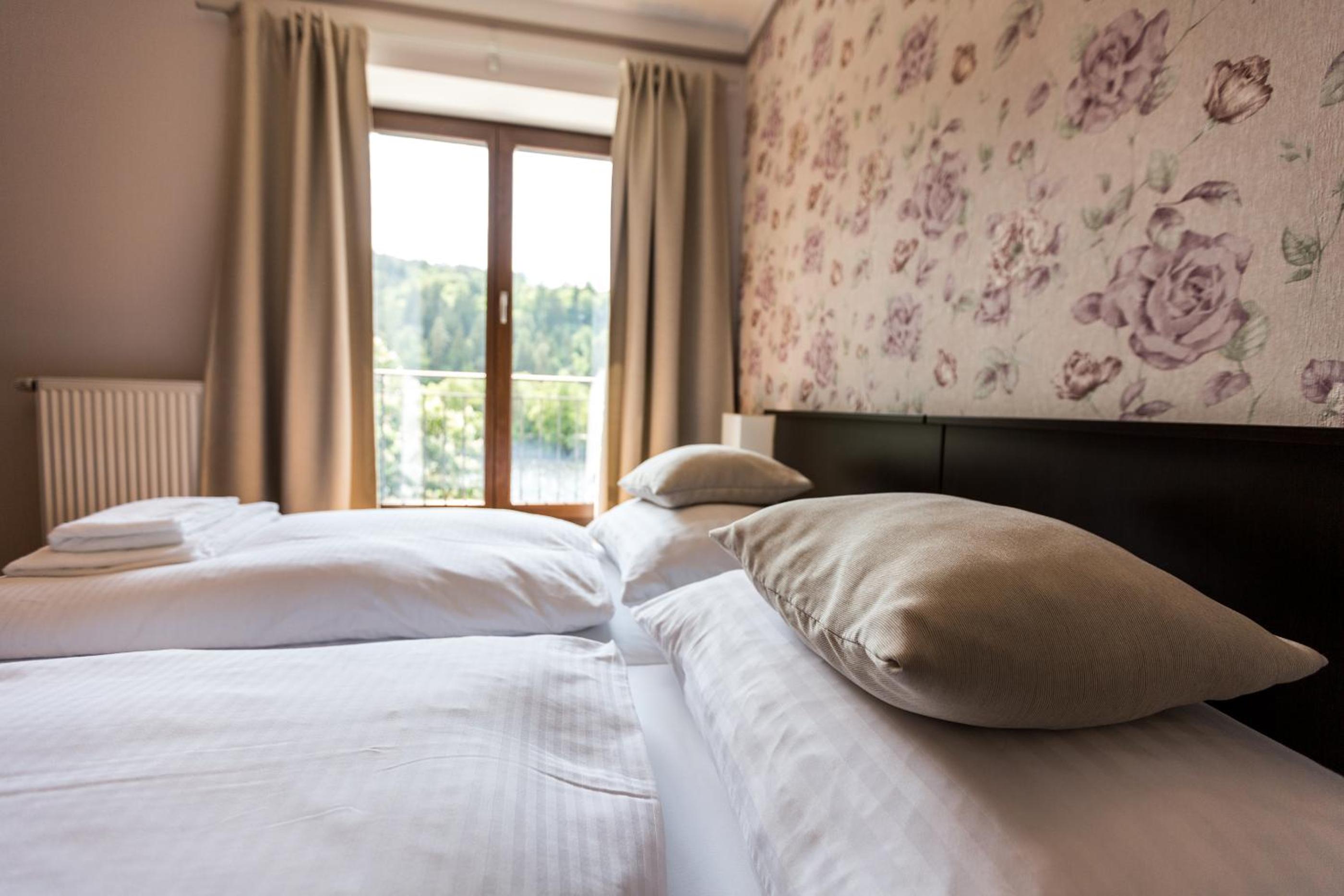Hotel pěkný, čistý, nové a pohodlné vybavení, příjemný a velmi ochotný personál, vynikající kuchyně, krásné a klidné prostředí přímo u řeky na konci cesty. Velké plus - funkční odvětrávání a přímotop v koupelně, takže žádné vlhké ručníky a navíc horká voda. Další plus - pohodlné parkování v ceně. Některé soboty bývá večerní program, ale nemohu hodnotit, v sobotu jsme už nebyli.