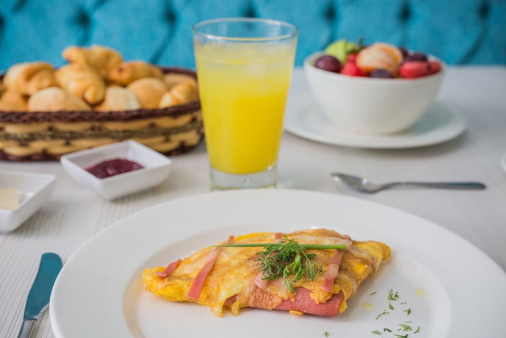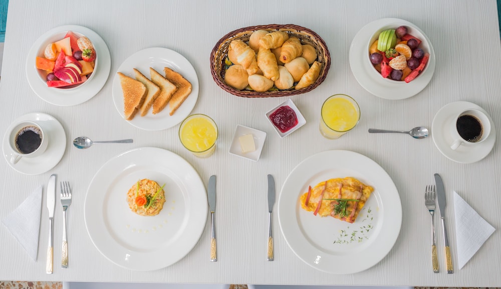 After the crappy places we have stayed in at San Andres & our unhappy experience with an Air Bnb at Cartagena, this place was incredible. The room was small yet very clean and comfortable (you can eat your food off of the floor kind of clean); plenty of towels are provided; the bathroom has nice shower water pressure and is super clean too. There’s a small fridge and locker box and plenty of closet space too. A big TV, large beds, potlights and a powerful AC, complete the room. Breakfast is provided for free from 7am-9am and it’s so plentiful with fresh fruits, breads, freshly made omelettes and juices.