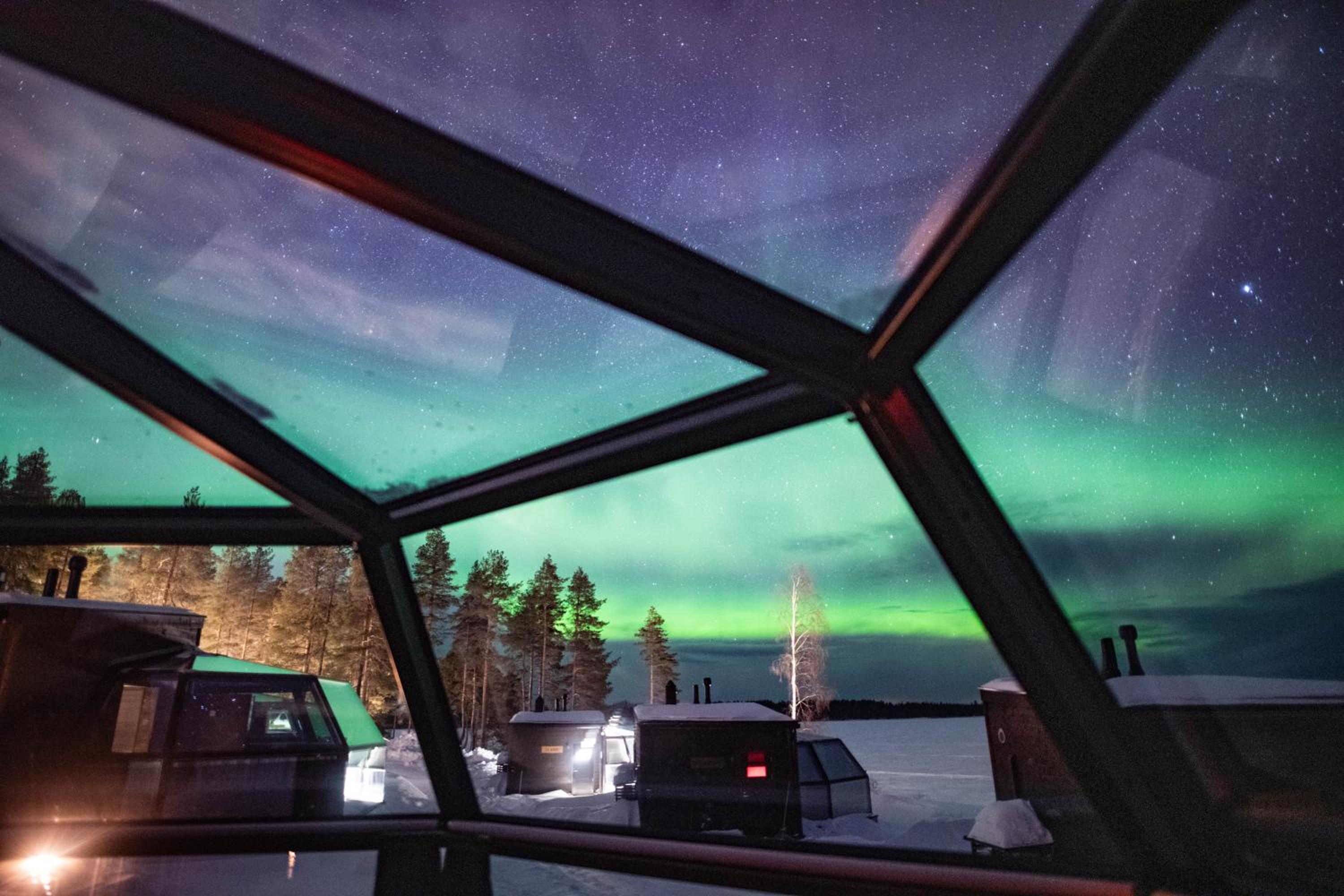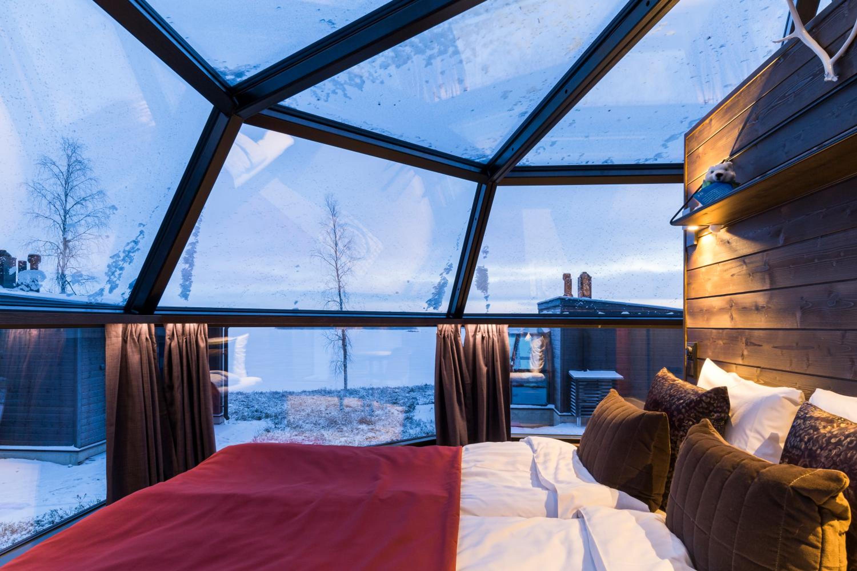 Experience the magic of the Finnish Lapland sky and Lake Ranuanjärvi from your private igloo at Ranua Resort Arctic Igloos. Sleep under the stars and enjoy the luxury of a glass-walled bedroom, complete with a private sauna and kitchenette.