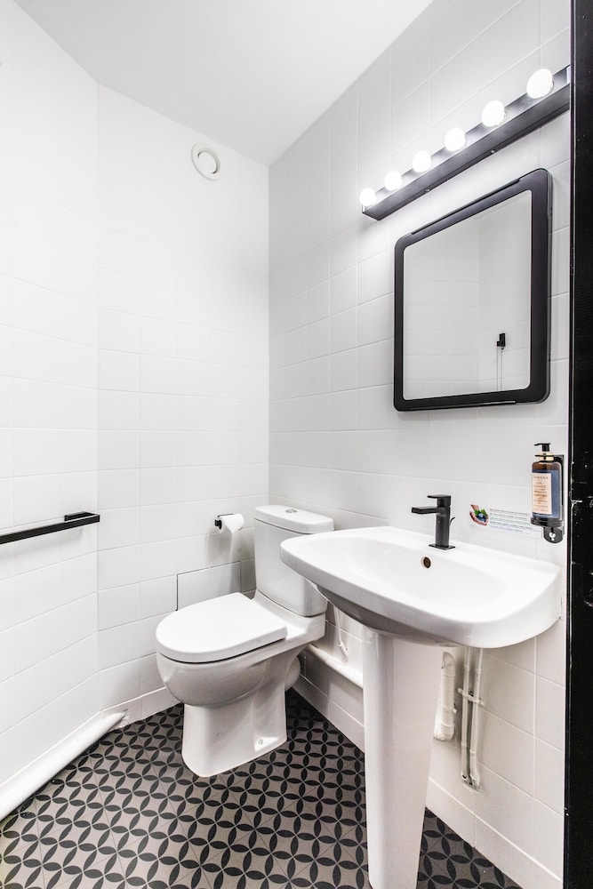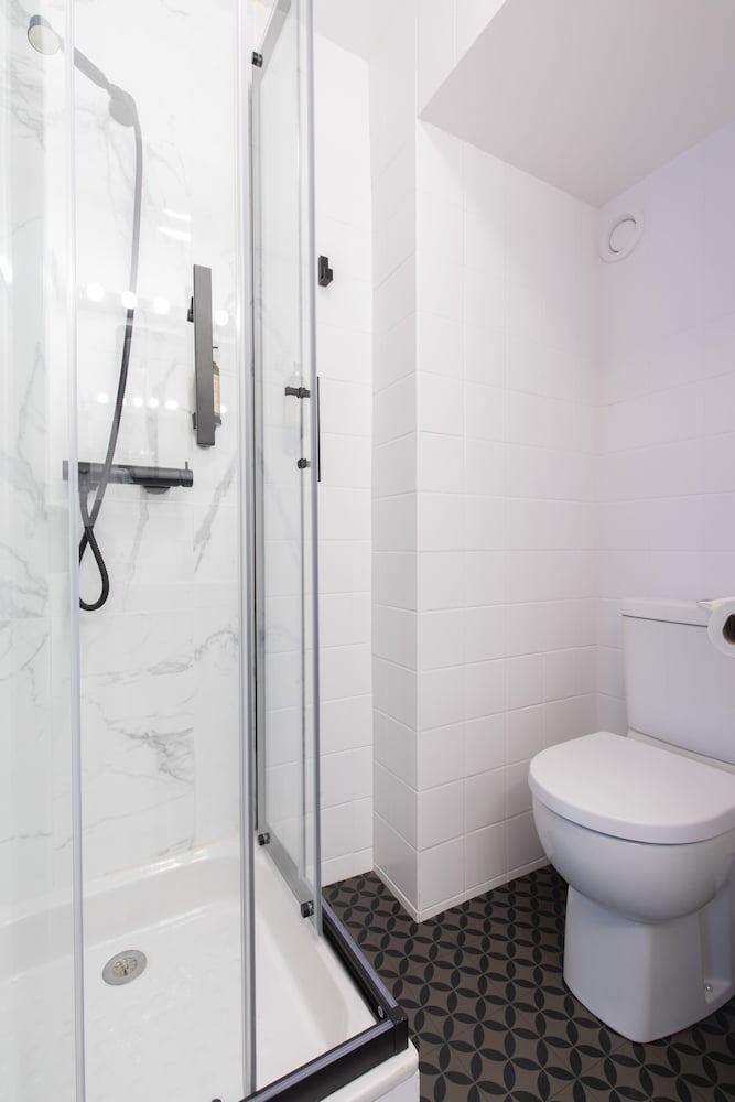 Aucune lumière naturelle (pas de fenêtres) petit espace oppressant . Fortes chaleurs même avec un dyson. Sdb petite et pas fonctionnelle