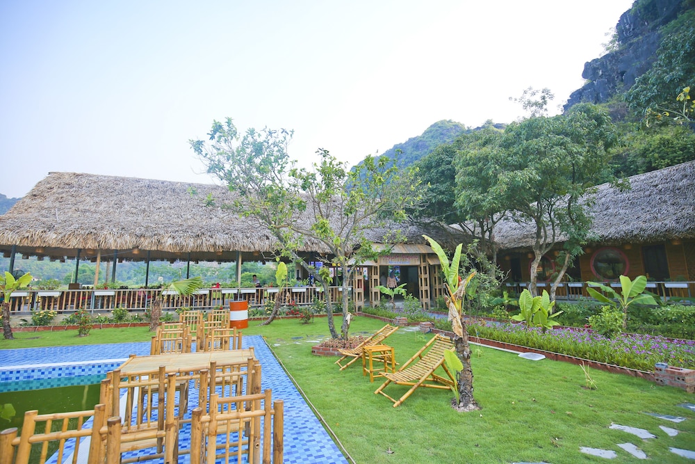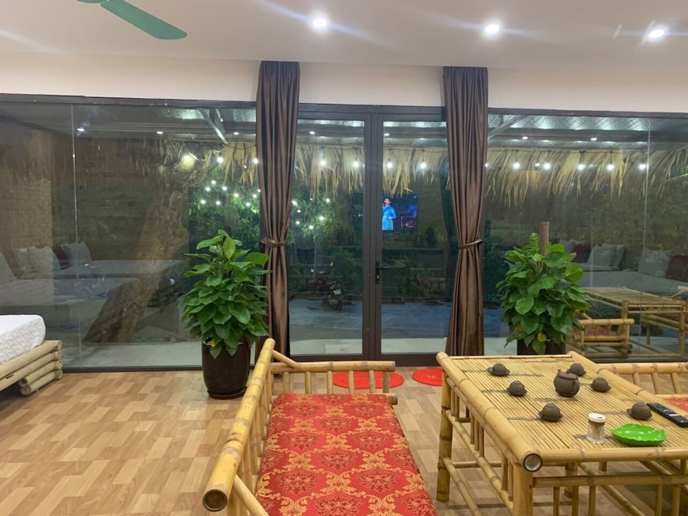 Stay at Trang An Bungalow in Hoa Lu for a riverfront getaway with proximity to scenic sites like Ninh Binh Walking Street and Tam Coc Bich Dong. Book now for a relaxing stay in the midst of captivating landscapes.