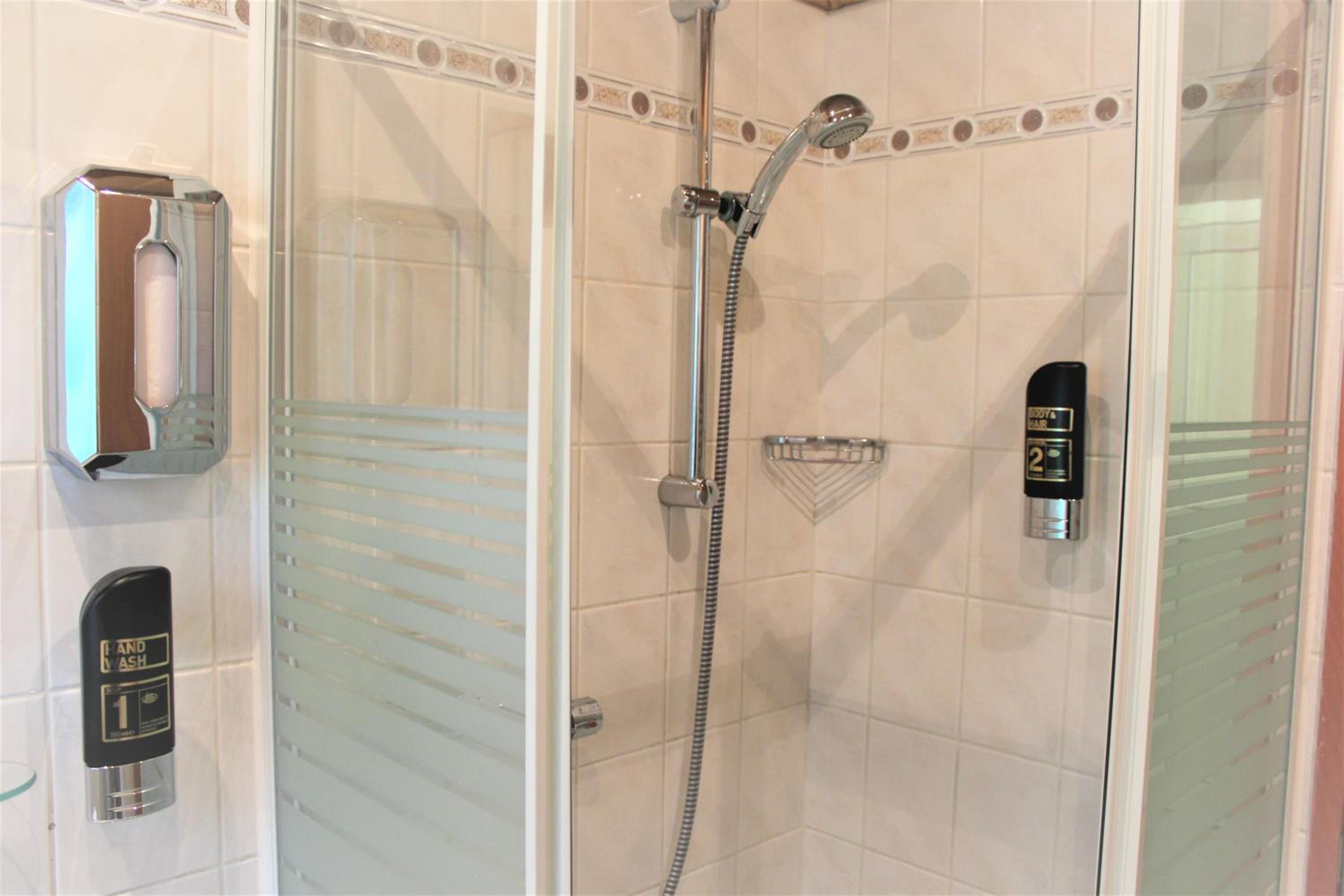 Sehr kleine enge Duschkabine, Bett zu weich