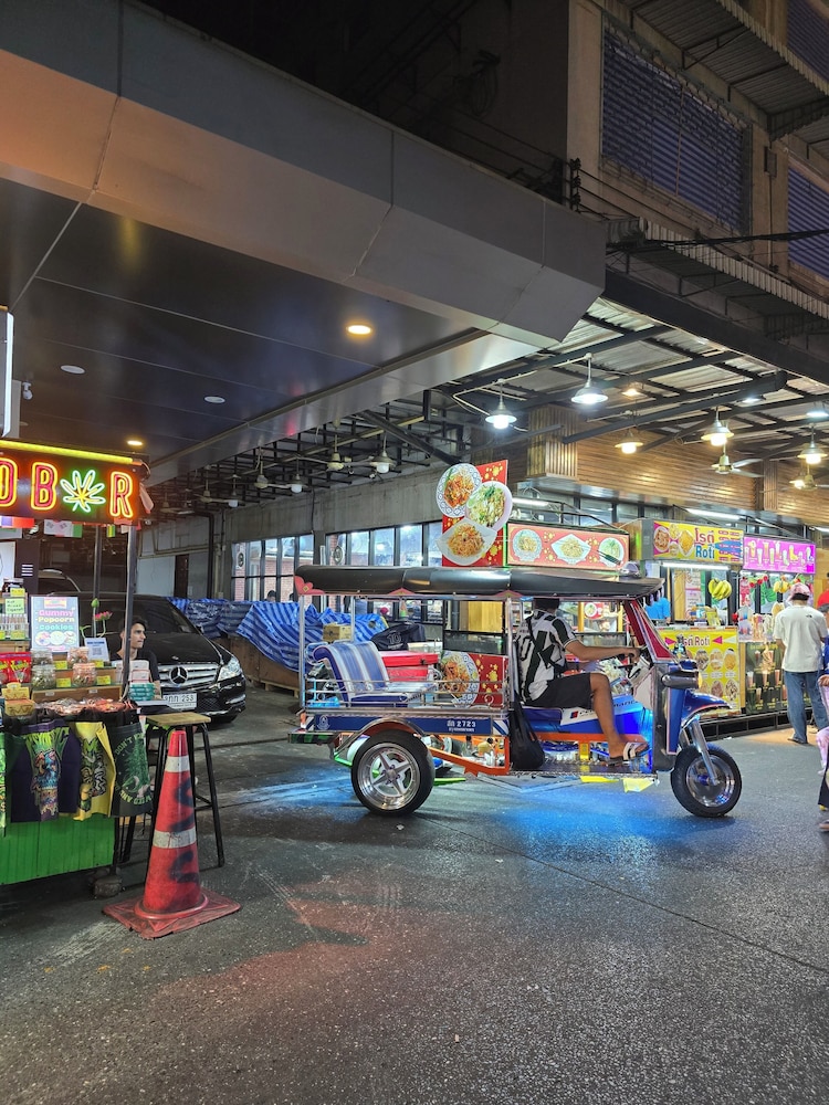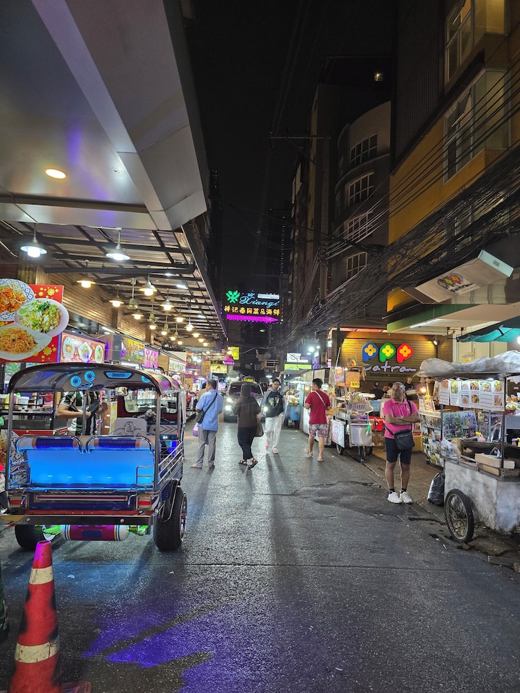 If you guys like to buy things, shopping clothes for cheap prices with standard material products, this is exactly the place for you, also nearby 7eleven and a lot of foods. They give us a room at new building, clean and satisfied.