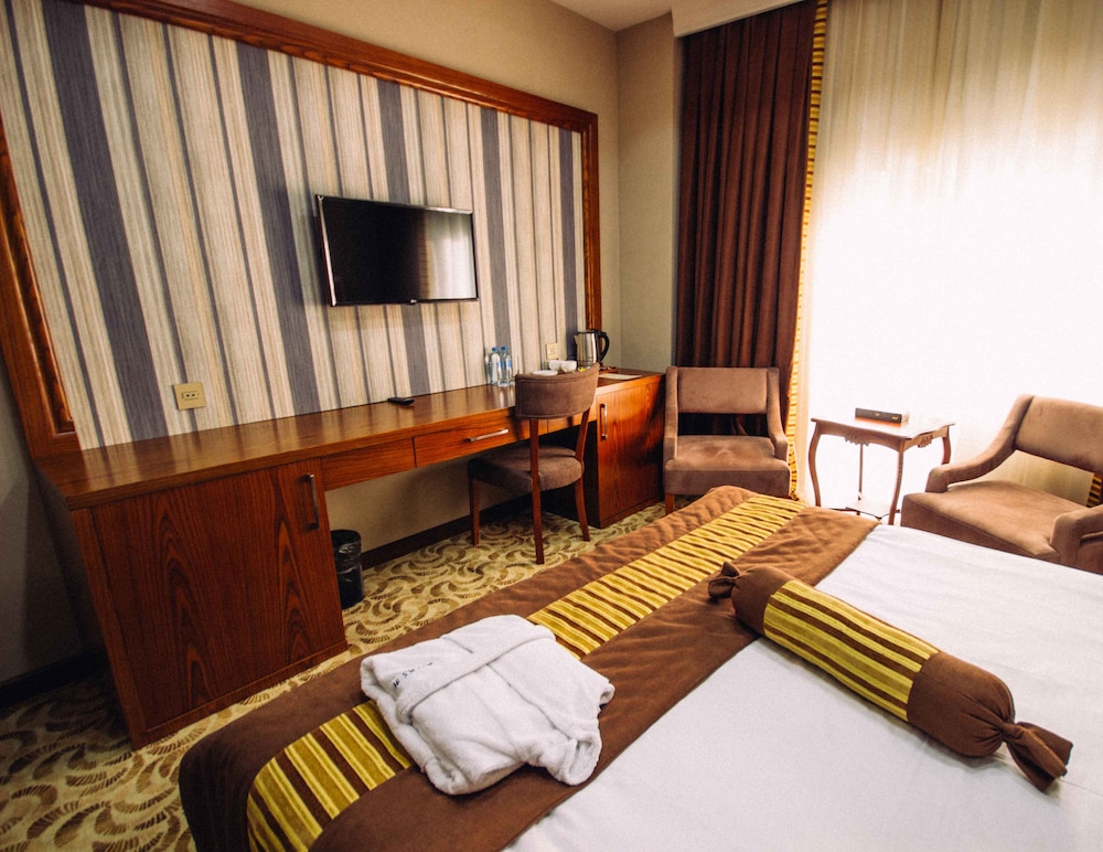 I have been at this hotel for New Year with my wife. Reception gave me free upgrade suite room (pictures of that room I will share here). It was very comfortable big sized room with living and sleeping spaces. Room has smart TV with YouTube and Netflix access. Also they have indoor swimming pool which we have used as well. As you know on special dates all hotels increase their price, but Atlas Hotel was mid range hotel with full hotel needable services. Nothing to say about bad sides. In general very good.