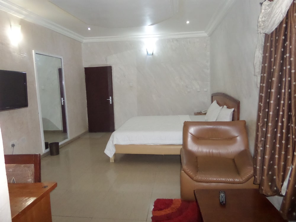 Experience the comfort of modern air-conditioned rooms with handy amenities like refrigerators and flat-screen TVs. Situated in Abuja's suburbs, the hotel offers proximity to key attractions like the International Conference Centre and Nigerian National Mosque.