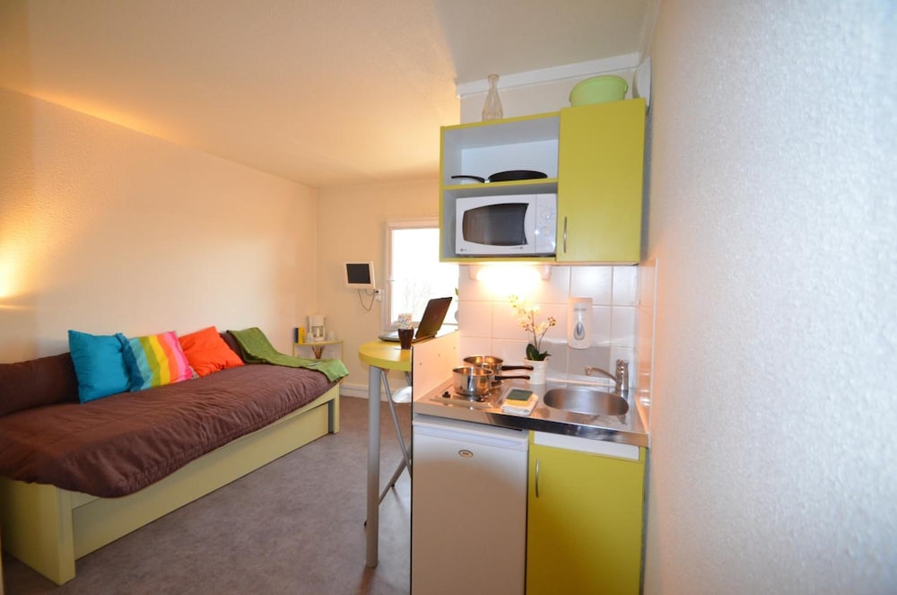 Allez 2 points négatifs pour faire comprendre que ce n'est pas le "Big Brother" de la firme qui écrit: l'isolation phonique présente des défauts, ça va que tout l'hôtel est calme, mais je l'ai trouvé avec plus de défauts qu'un simple "F1", peut-être la porte tout simplement. Et point négatif pour la collecte des déchets, moi le petit vosgien qui essaie de faire gaffe, il n'y a vraiment pas possibilité de faire facilement et sérieusement le tri sélectif... A cuisiner en autonome, on se retrouve très vite avec verre, boîtes de conserve et cartons, quelle tristesse de se retrouver à tout mettre ensemble dans une poubelle unique!! Surtout que le guide rapide posé sur la table encourage avec la phrase culte "pensez au tri sélectif!", y penser c'est bien, nous donner les moyens de l'appliquer c'est mieux!