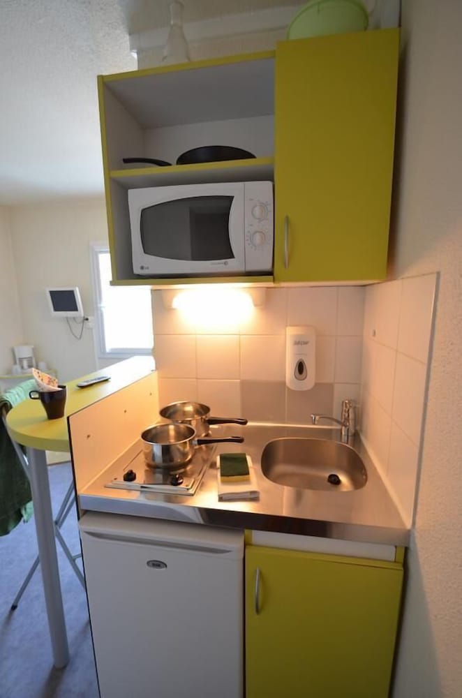 La petite cuisine est très pratique , hôtel calme