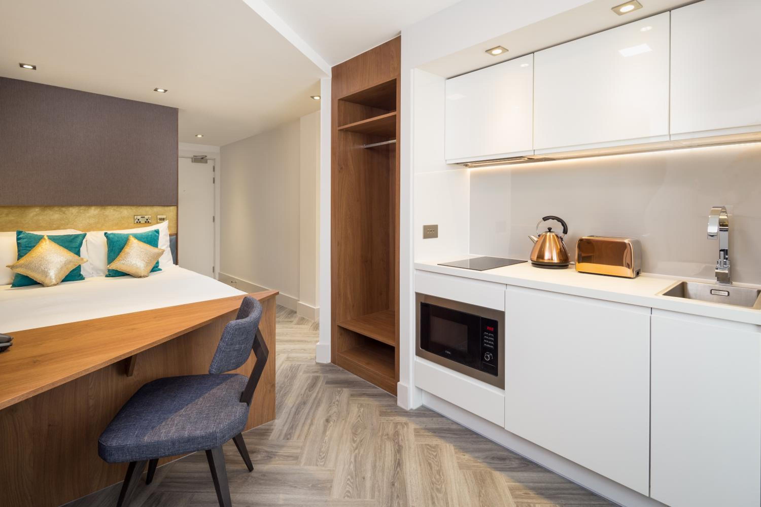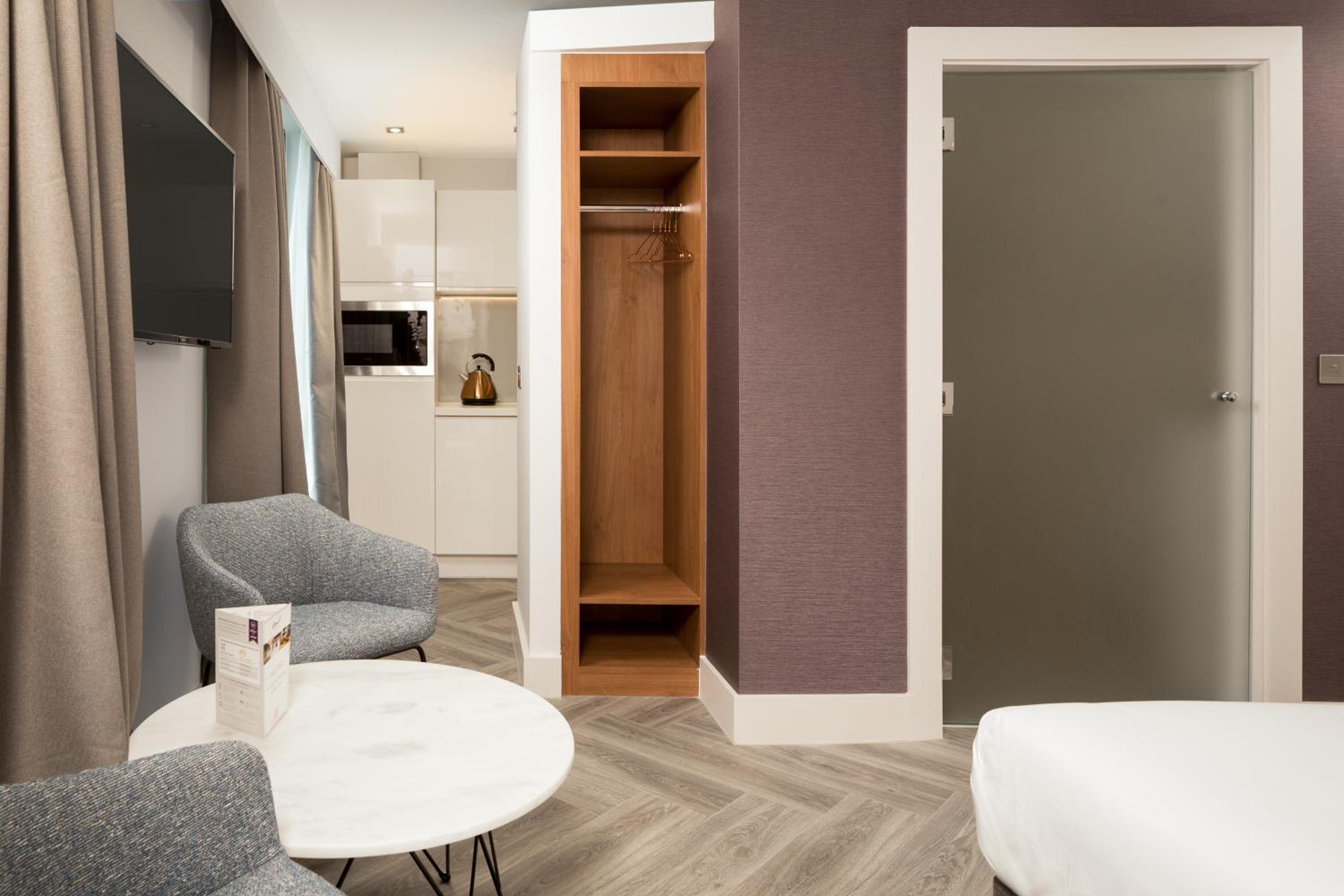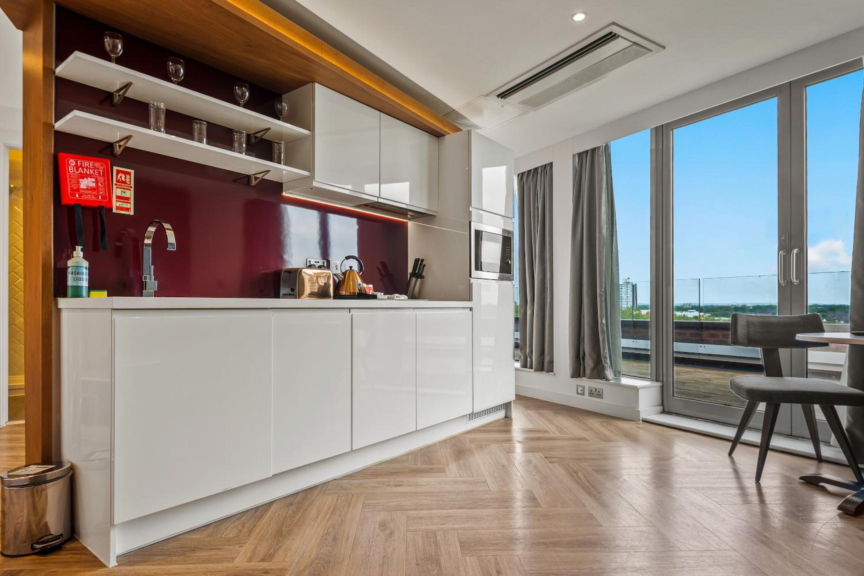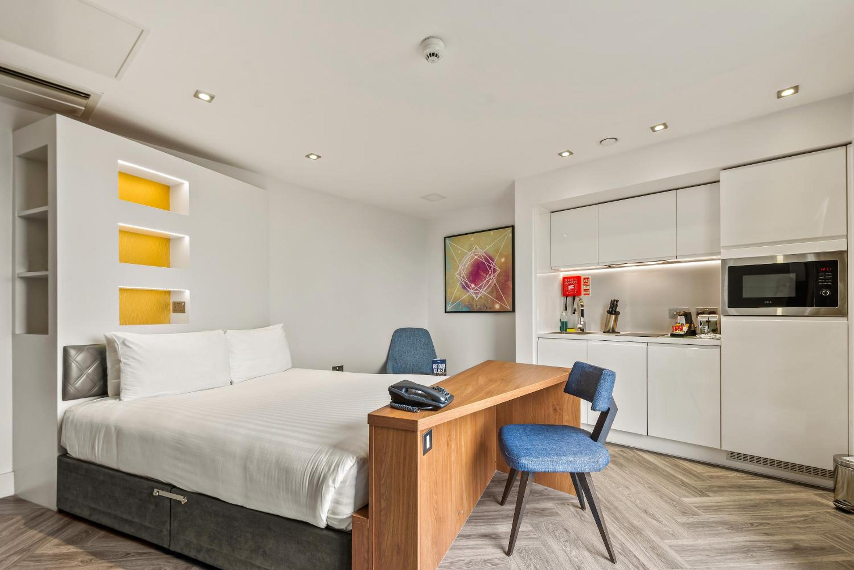 Roomzzz London Stratford offers modern accommodation with a fitness centre and free WiFi. Each studio features a kitchenette, flat-screen TV, and a private bathroom. Guests can enjoy the convenience of a microwave, toaster, fridge, and kettle in their room.