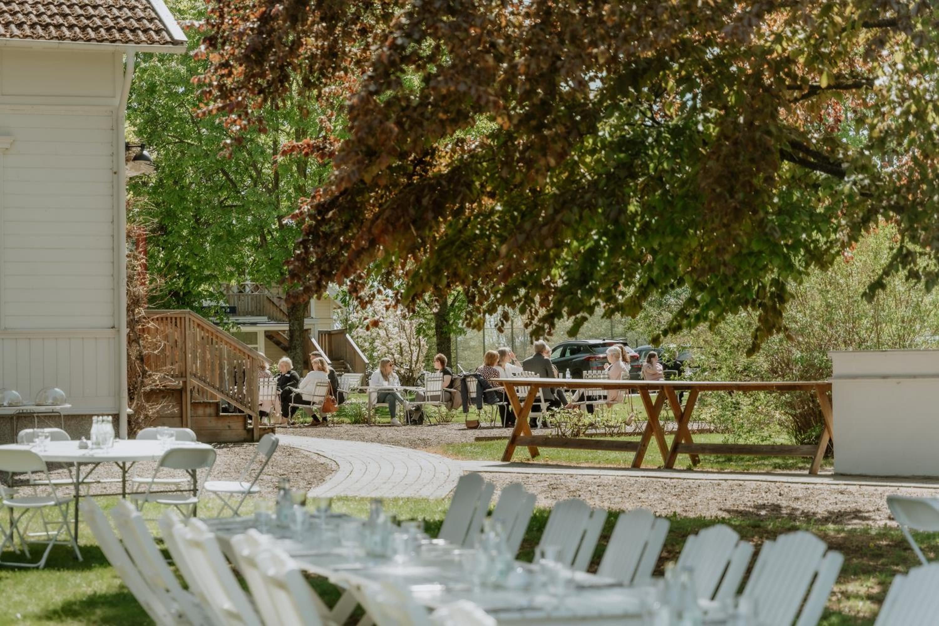 Fint med stora grönområde och dess sittgrupper.