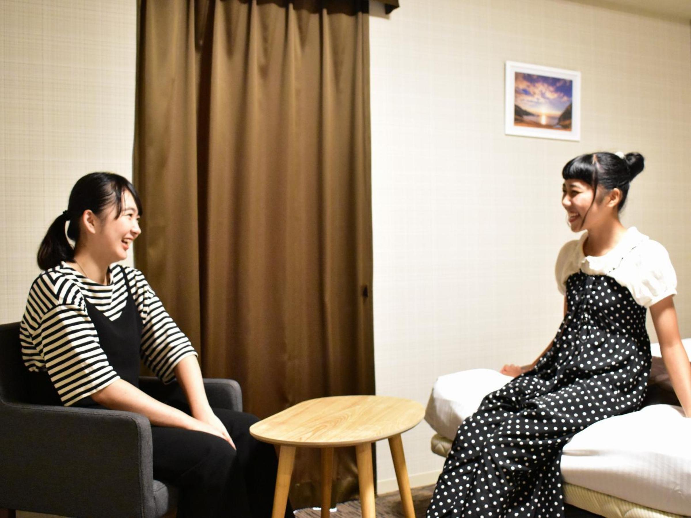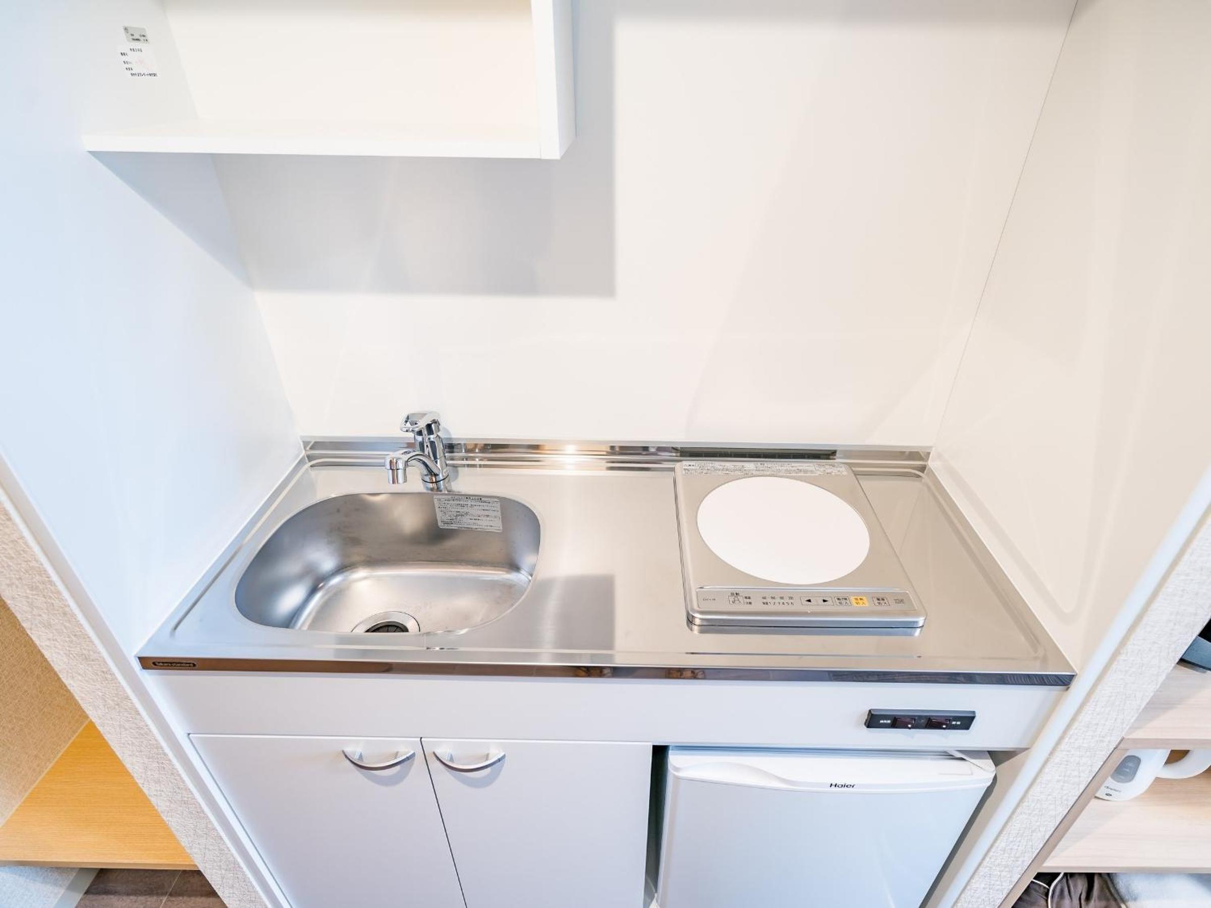 ミニキッチンがあるお部屋もあって一人暮らししていた時の部屋を思い出しました。調理器具や食器の貸し出しもしてくれるので、連泊自炊も出来ます。
