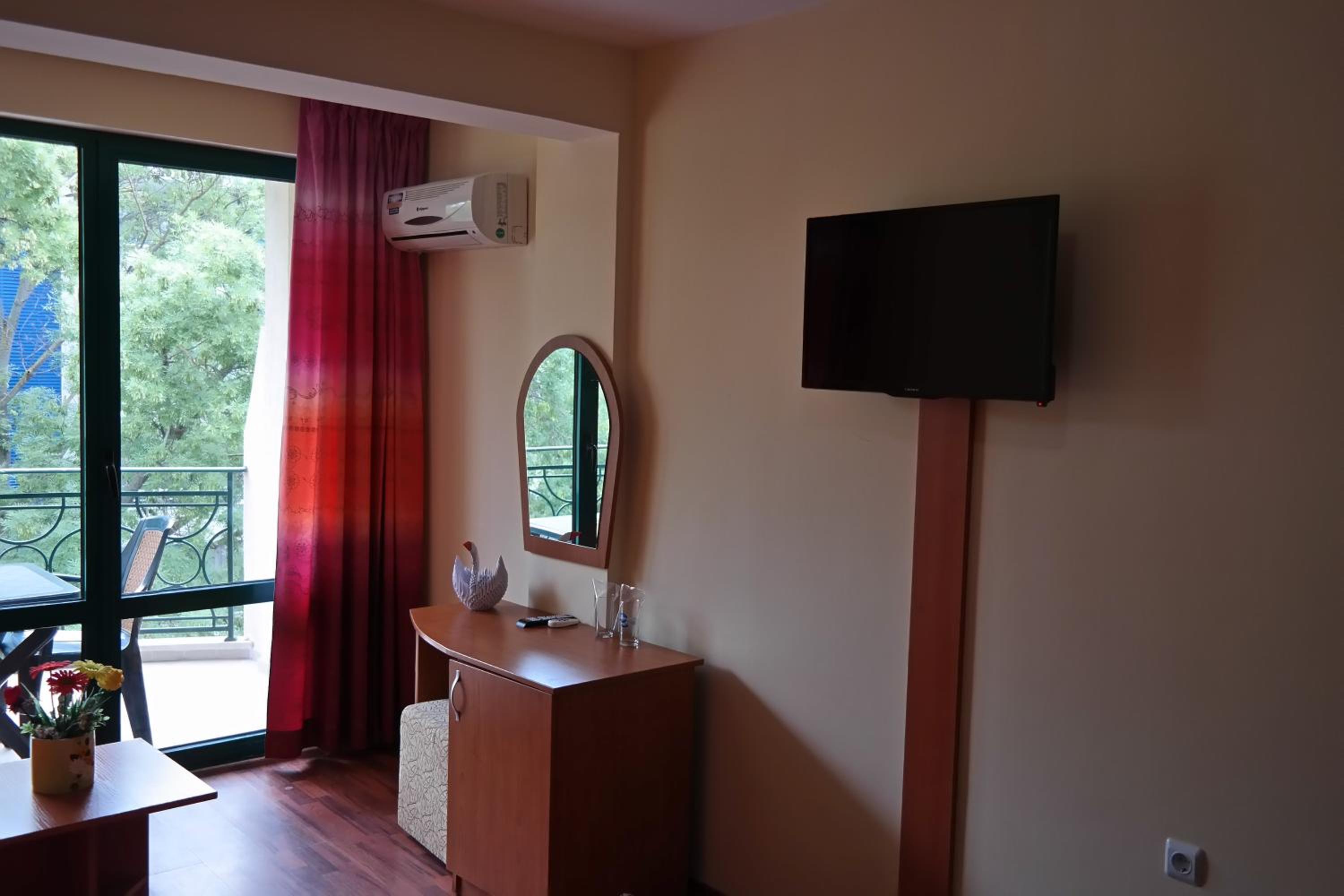 There was a friendly welcome at reception from Tsveti. The room was fine, with a nice balcony. Short walk to the centre of Sunny Beach. Room was comfortable. We slept well and then had a nice breakfast the following morning. This is a fine hotel, with a friendly, homely atmosphere. From Tsveti in reception, to the cleaners and the staff on breakfast the next morning, they were all smiling, helpful and friendly. We will definitely stay here again.