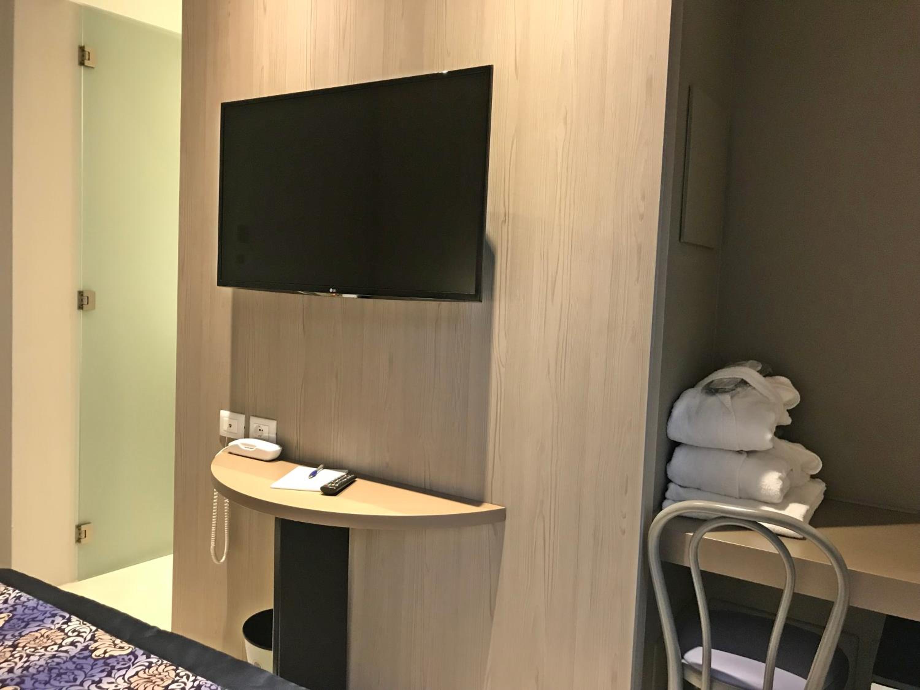 Experience comfort and convenience in our rooms equipped with modern amenities such as flat-screen TVs, air conditioning, and private bathrooms. Some rooms even feature a balcony for a relaxing outdoor space.