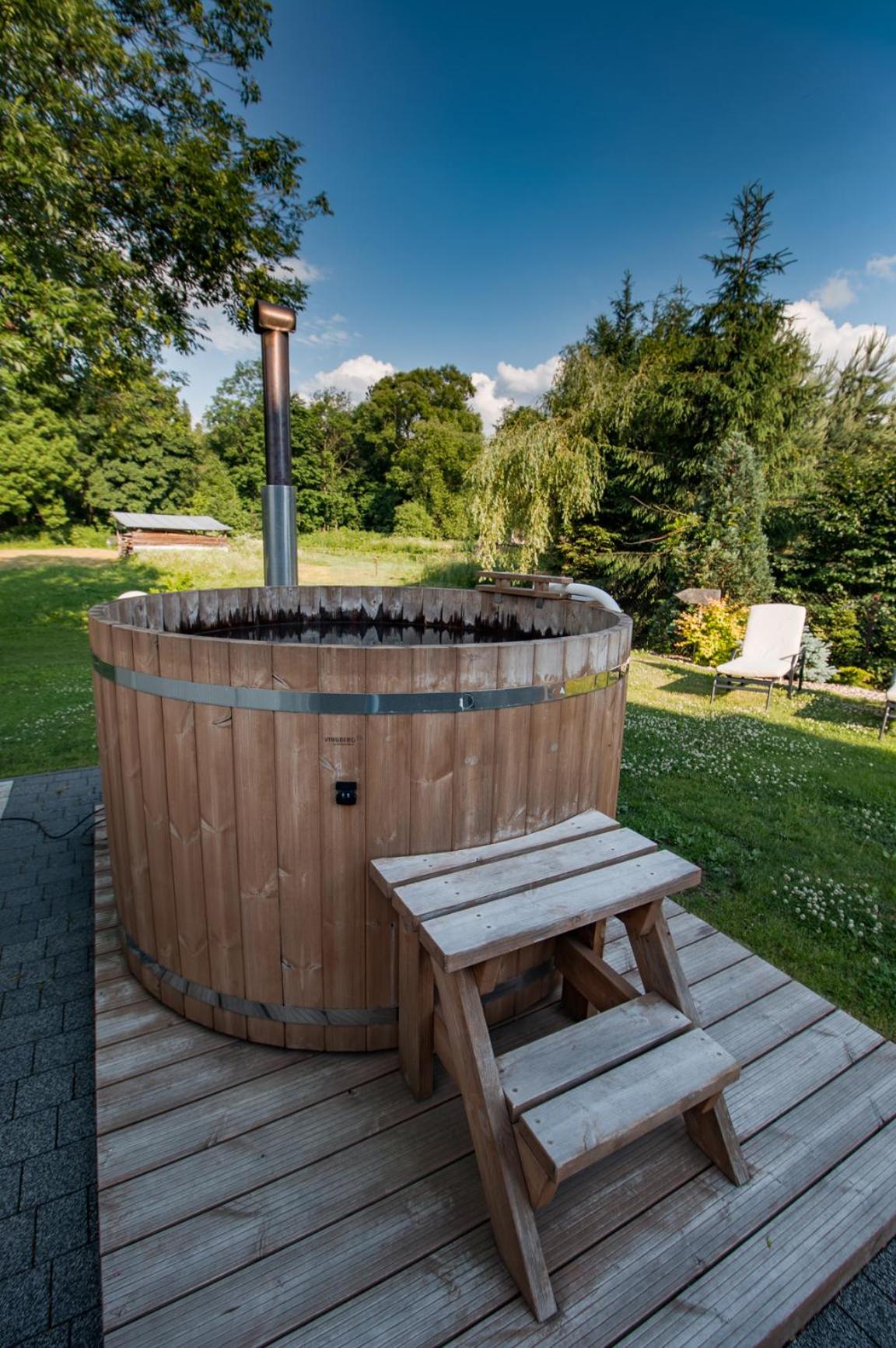 Outdoor hot tub was fun.