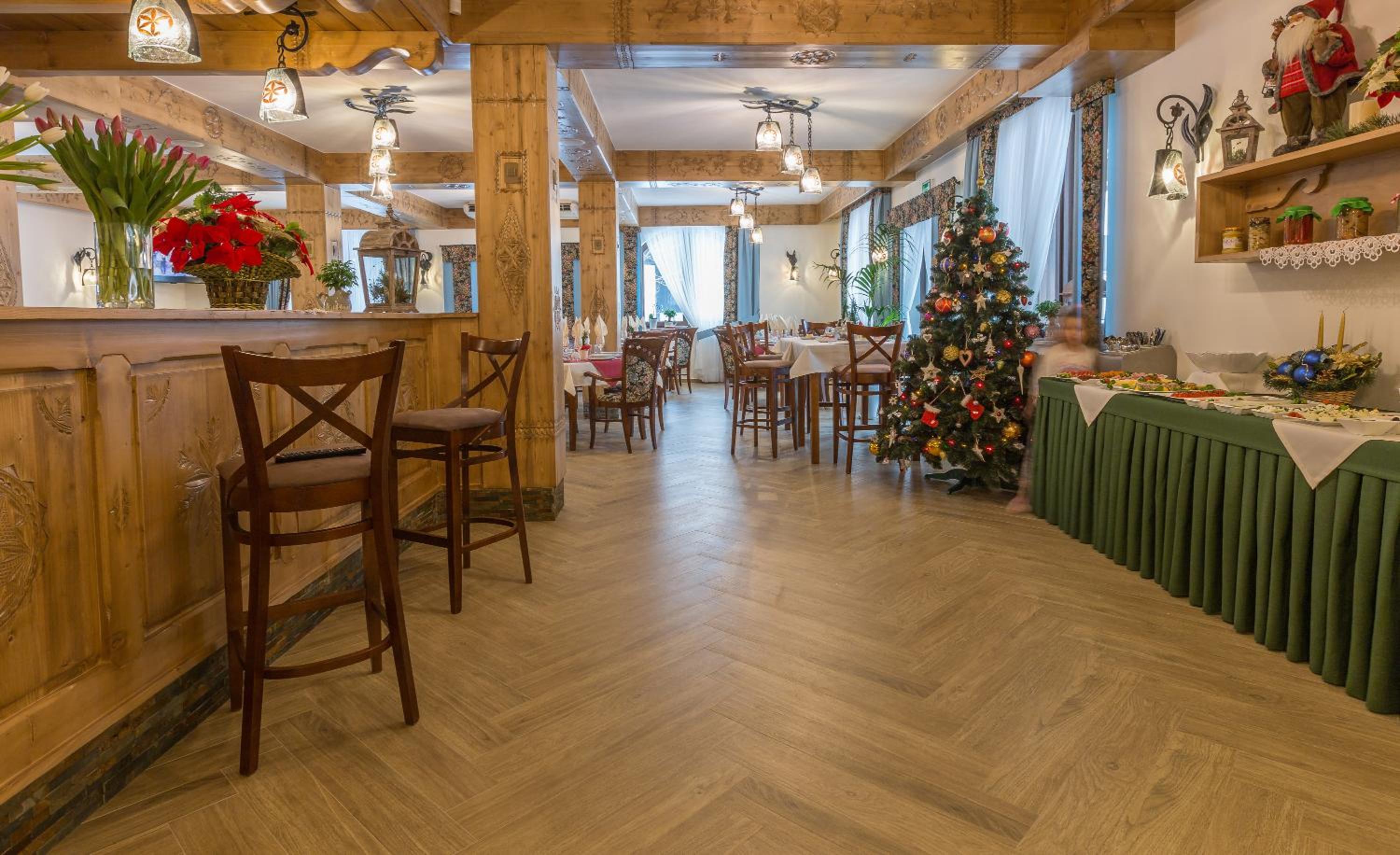 Uitstekende locatie op wandelafstand van de skipiste, bespaart parkeerkosten. De skispullen konden veilig en warm opgeslagen worden middels je kamerpasje. Er werd ook een Poolse avond georganiseerd, wat ons deed kennismaken met Poolse lekkernijen die we nog niet kende.