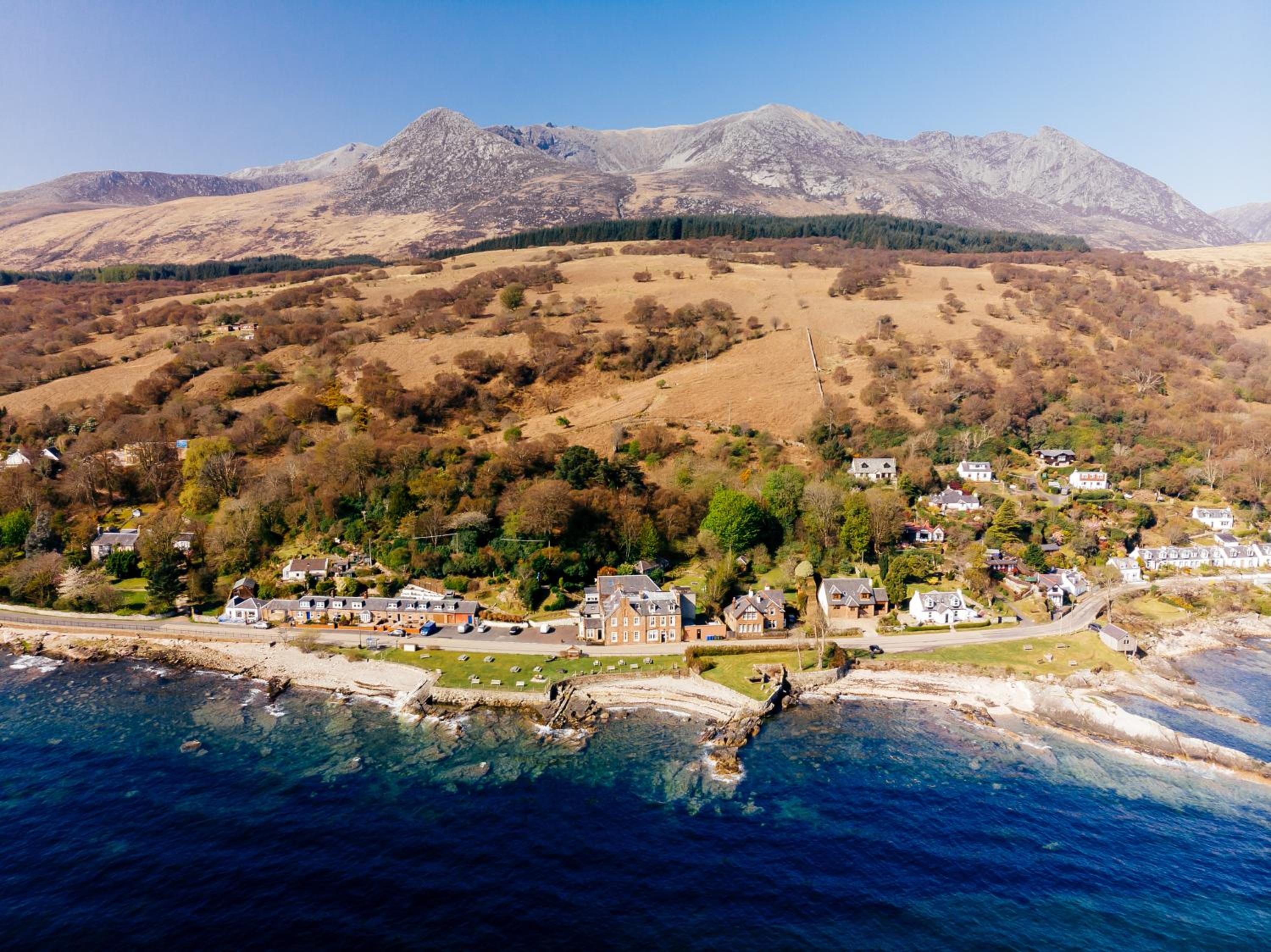 Nestled in the charming village of Corrie, The Corrie Hotel offers a tranquil retreat with easy access to Brodick Castle and a private beach area for guests to unwind.