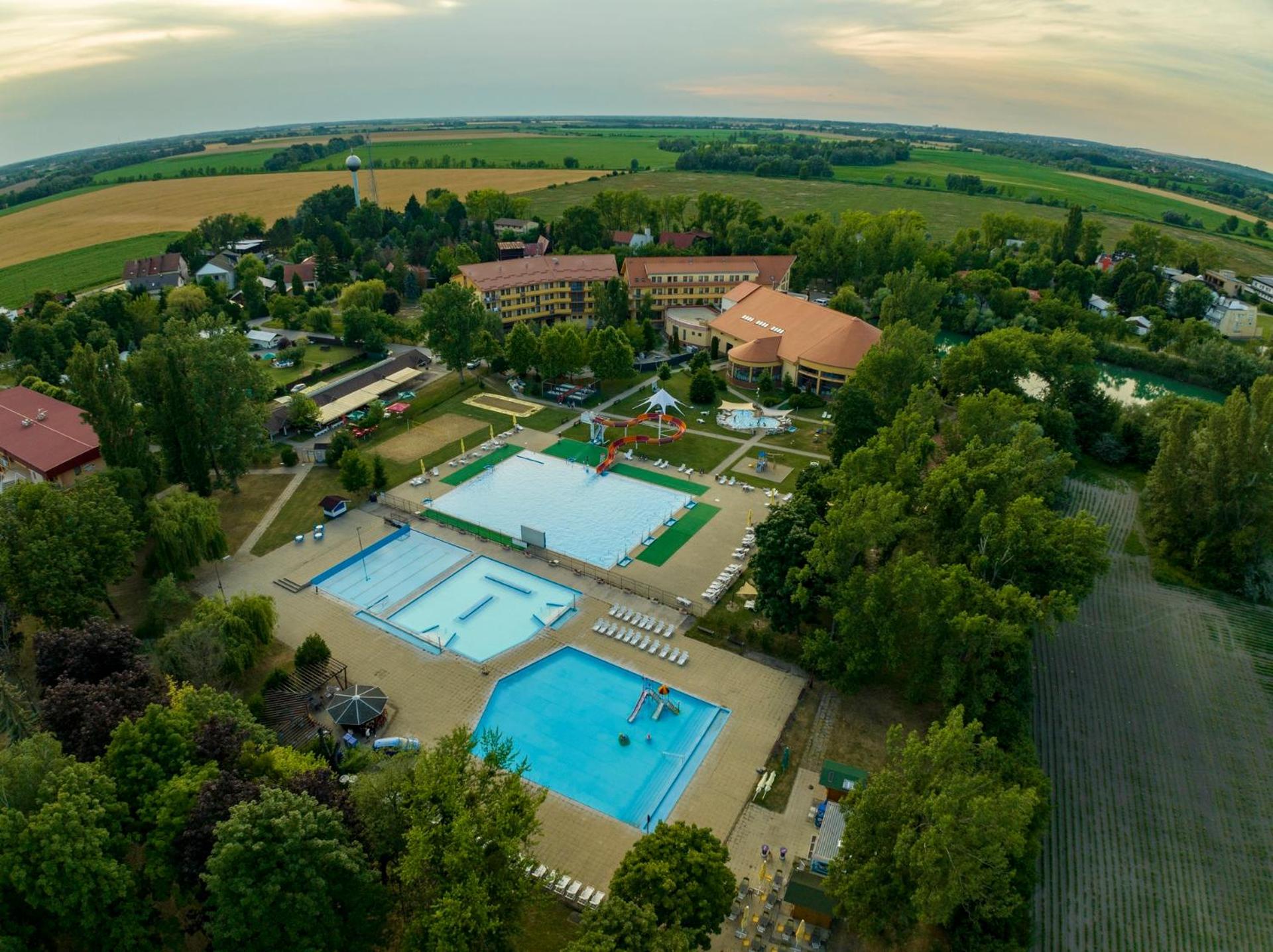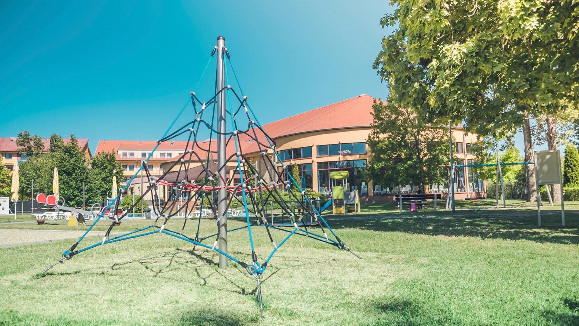 Enjoy a range of recreational activities including an outdoor pool, children's playground, sports ground, and beach volleyball court. Free access to the Water World with thermal spring pools and various fitness classes adds to the rejuvenating experience.