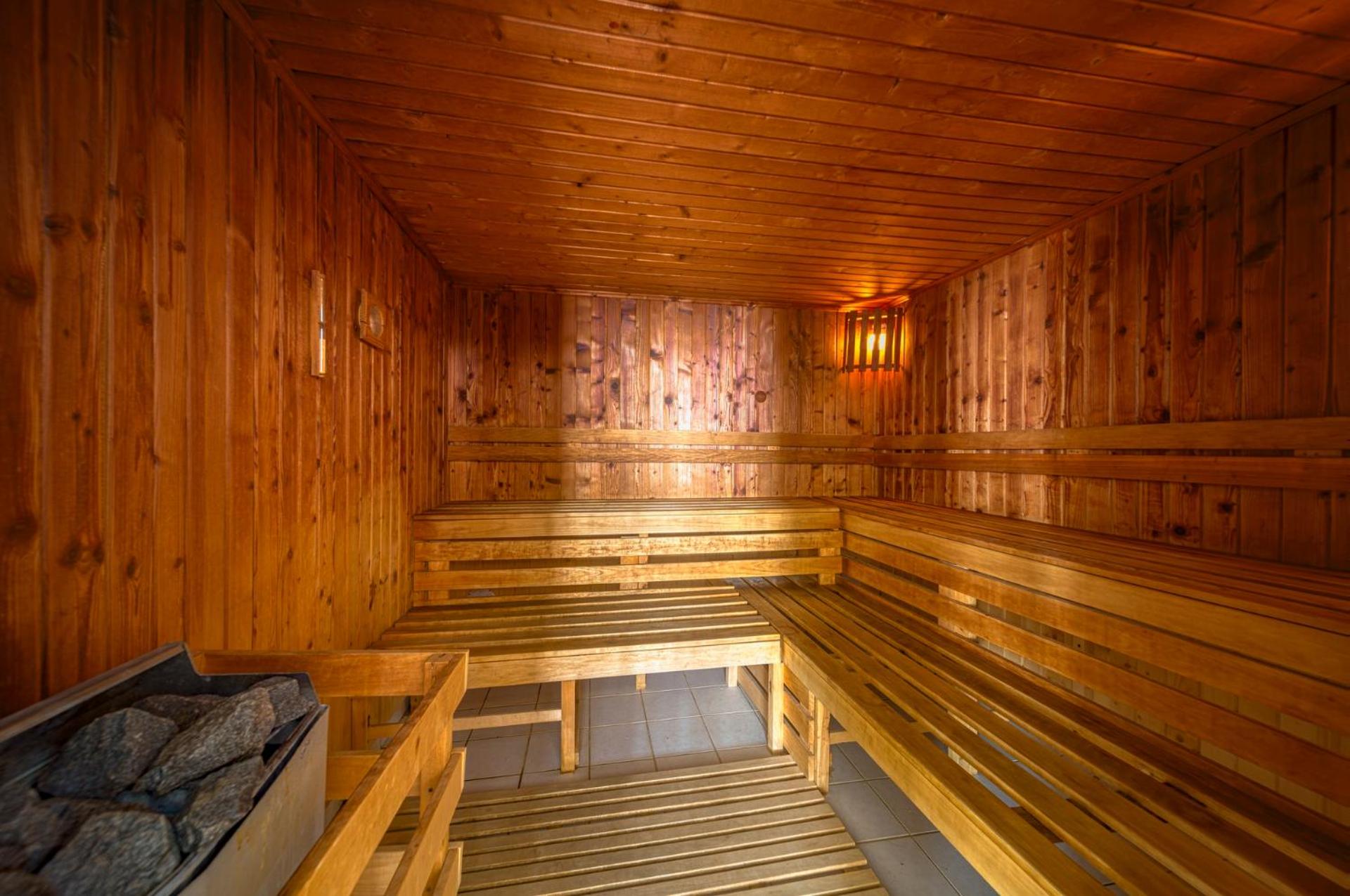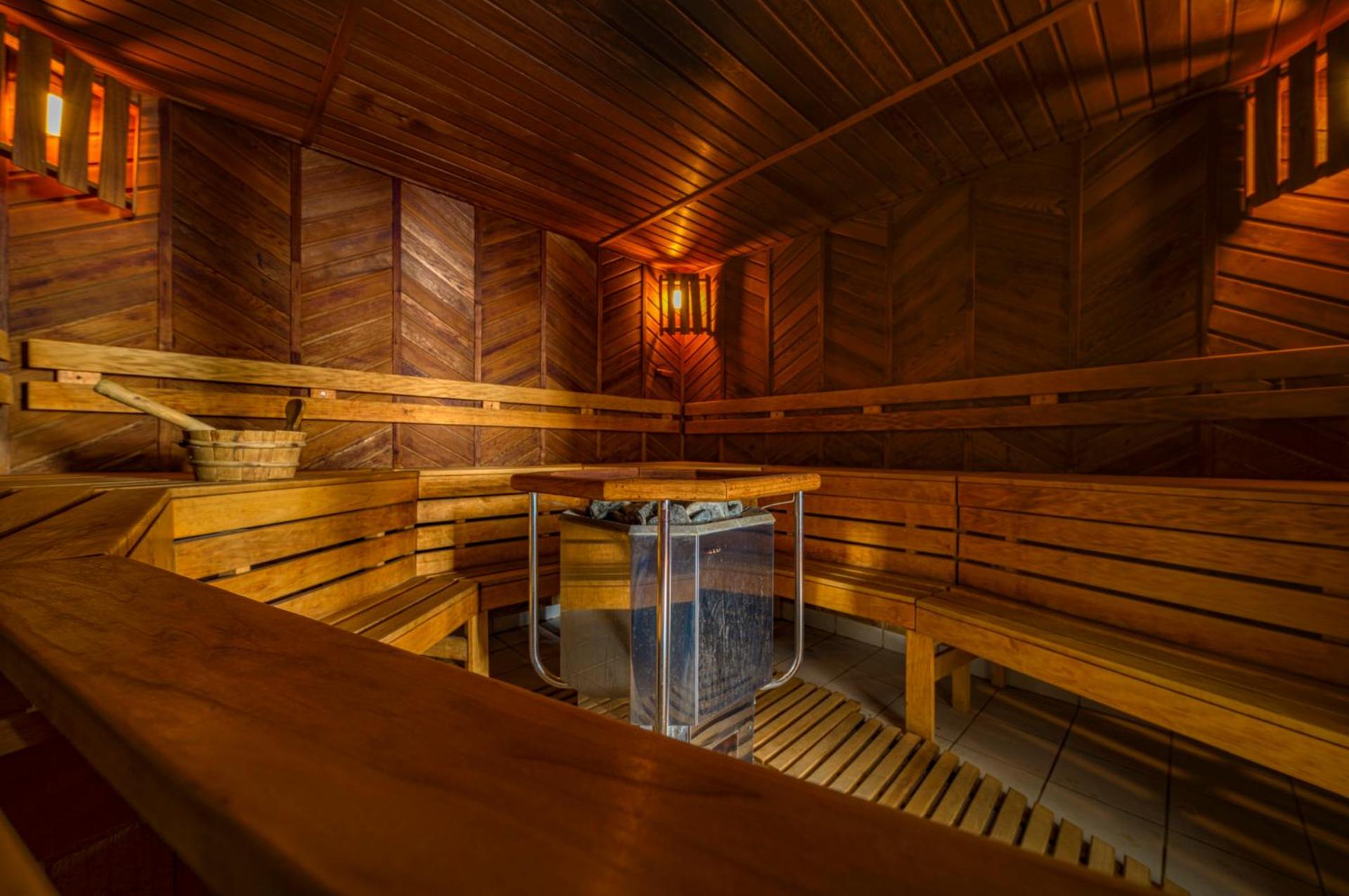 Indulge in the sauna world with Finnish saunas, herbal aromatic sauna, and a mineral water hot tub. Access the fitness center and benefit from free private parking with 24/7 monitoring.