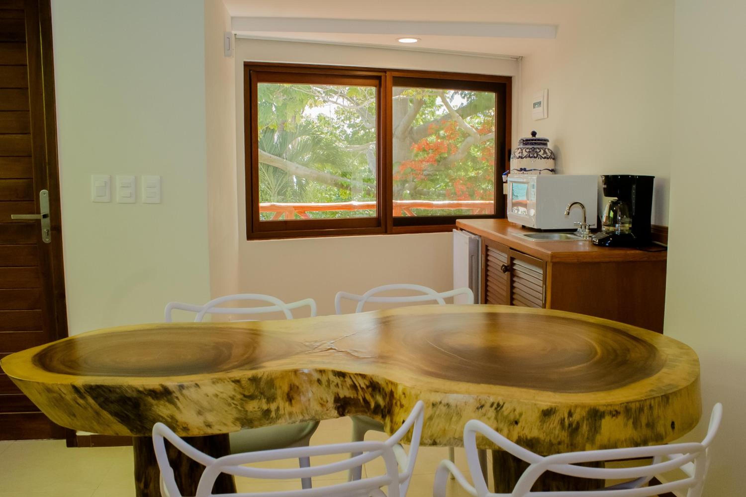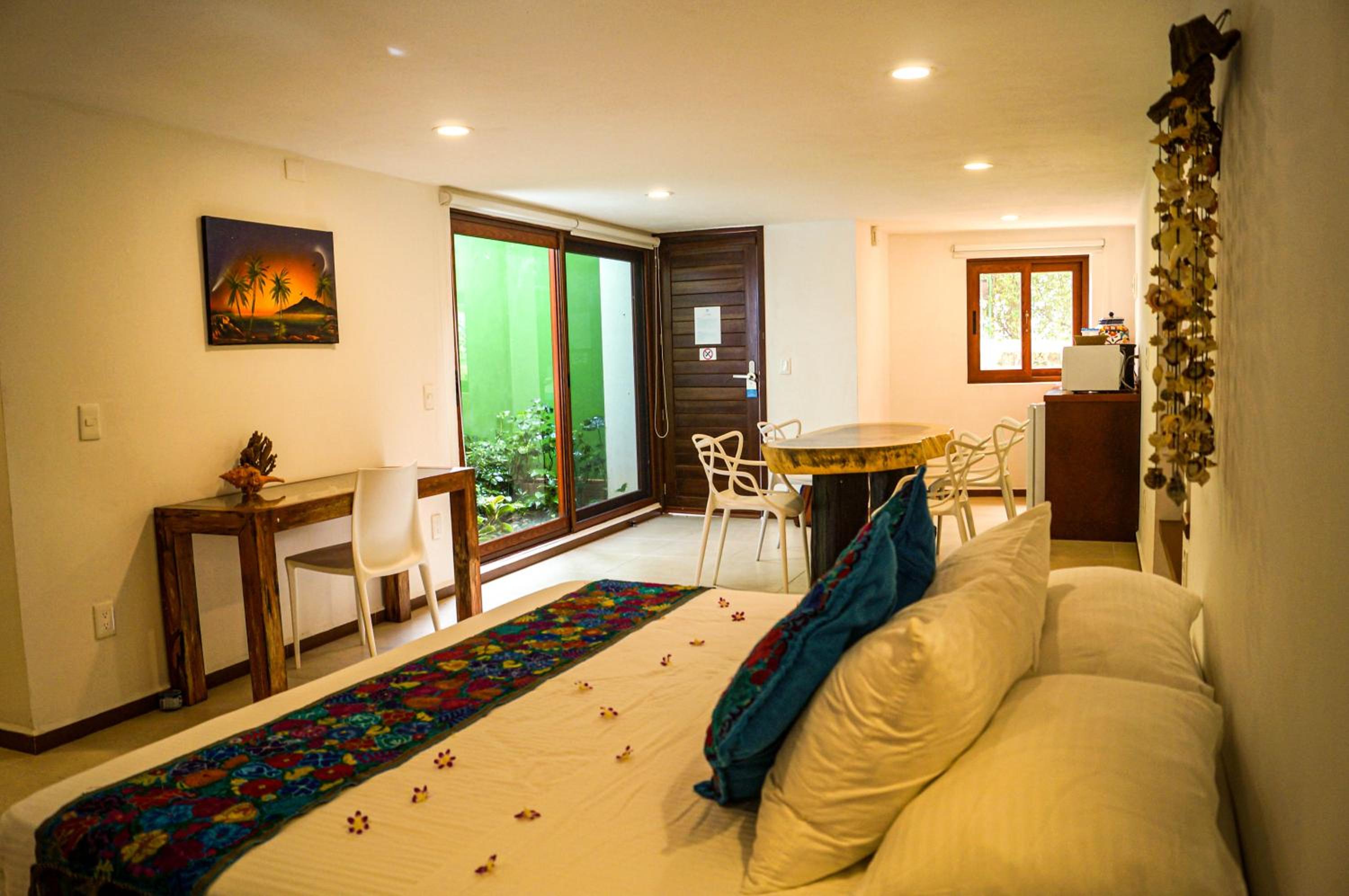 Indulge in comfort at Casa Azul Maya with air-conditioned rooms, a fully equipped kitchenette, and modern amenities like flat-screen TVs and free WiFi.