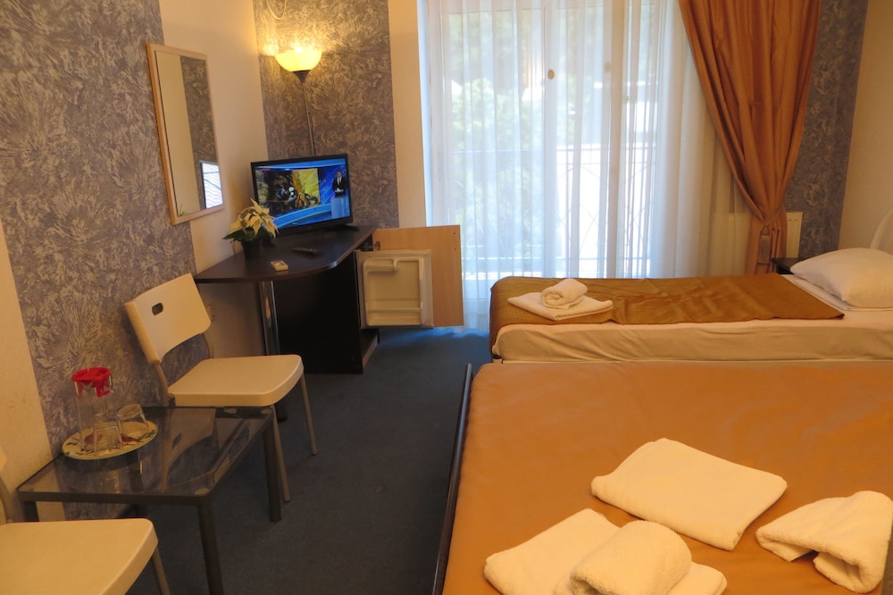 Indulge in modern comforts with free Wi-Fi, arcade/game room, and tour assistance, complemented by features like air-conditioned rooms with balconies and flat-screen TVs.